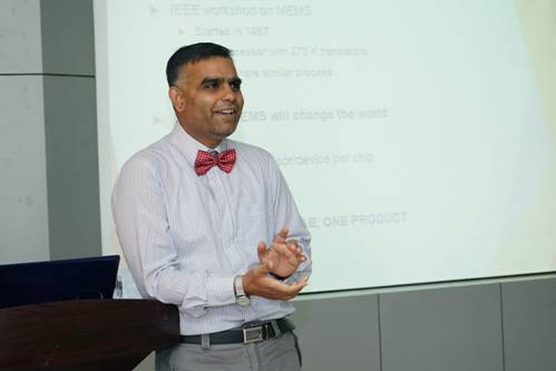 Choubey教授首先在机电学院第一会议室为必赢官网师生做了题为“When one is not enough: Large number of microsystems on a chip”以及“When things start bending: Nonlinearity in MEMS”的学术报告,吸引了来自不同学院的40多名师生参与其中。