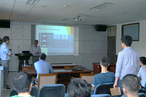在报告中,Choubey教授幽默风趣地介绍了MEMS(微机电系统)的发展历史以及耦合谐振式传感器的研究现状、未来发展趋势等等,引起了在场师生浓厚的兴趣,大家都积极与他进行交流讨论。随后,Choubey教授在常洪龙教授的陪同下参观了机电学院空天微纳系统教育部重点实验室,并与实验室师生针对微传感器的设计、工艺与测试进行了深入细致的交流讨论。