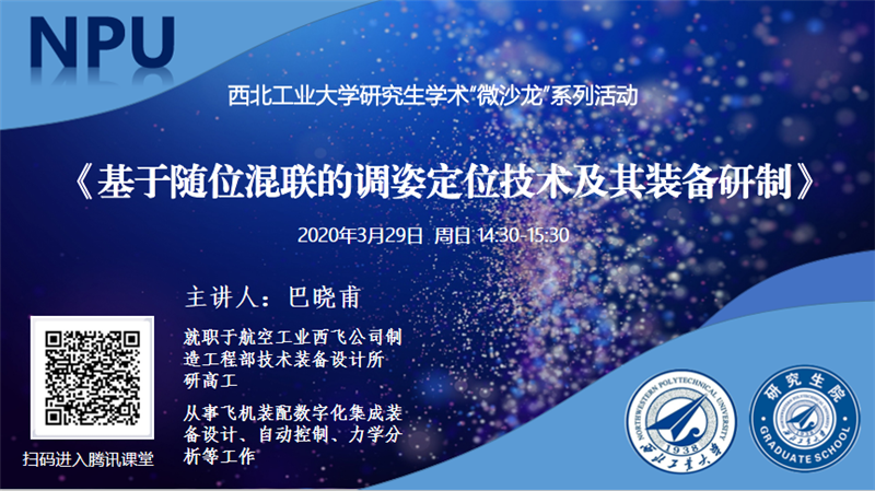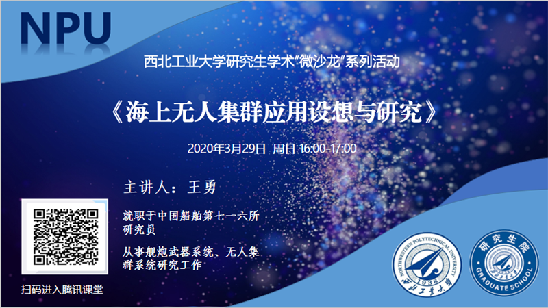 同时,欢迎研究生积极发起“微沙龙”活动!“微沙龙”在疫情防控期间以在线直播形式为主,可根据实际情况使用腾讯课堂等多种形式。研究生院将负责“微沙龙”的宣传和组织工作。有意向参与的研究生可联系研究生院培养办,并将报告信息发送至邮箱:pyb@nwpu.edu.cn。报告信息包括:沙龙主题、时间、主讲人、直播方式(包含平台及进入讲座二维码)、沙龙内容(100-200字)、主讲人介绍(50-100字)。