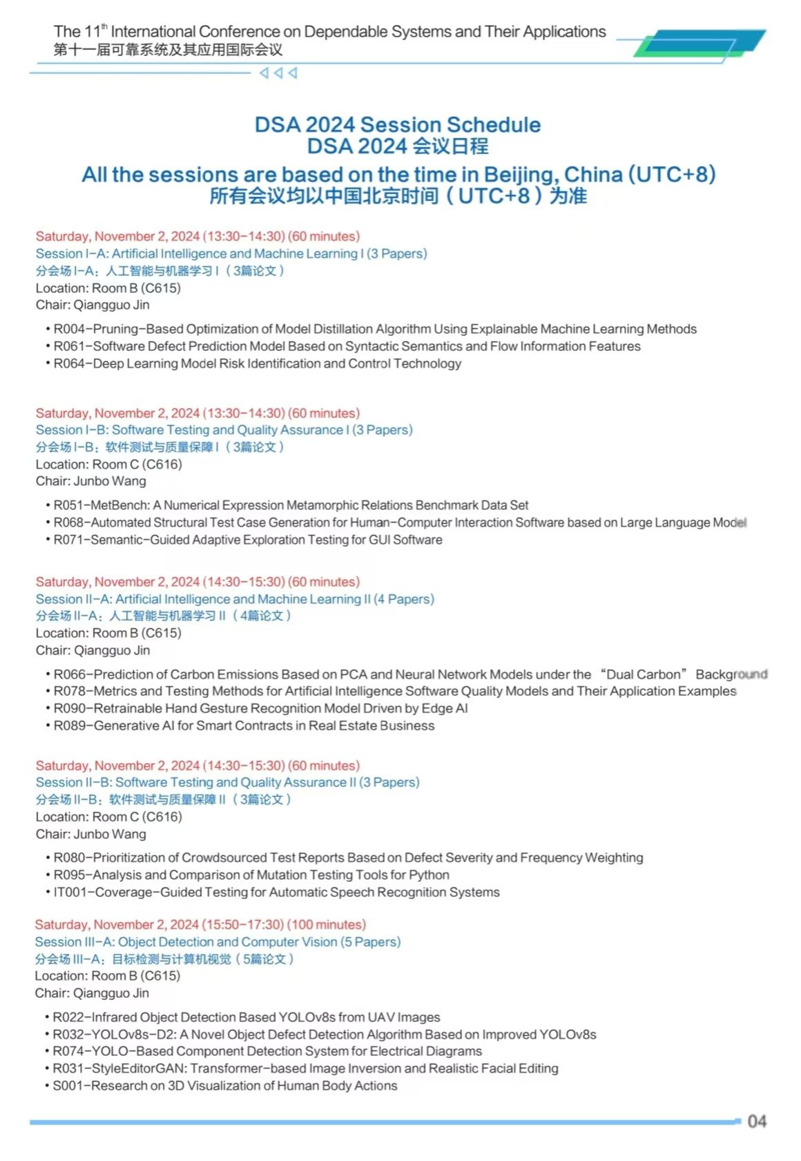 第十一届可靠系统及其应用国际会议(DSA 2024)将于2024年11月2日-3日在必赢3003no1线路太仓智汇港举办,会议安排如下,欢迎各位专家学者参会交流。