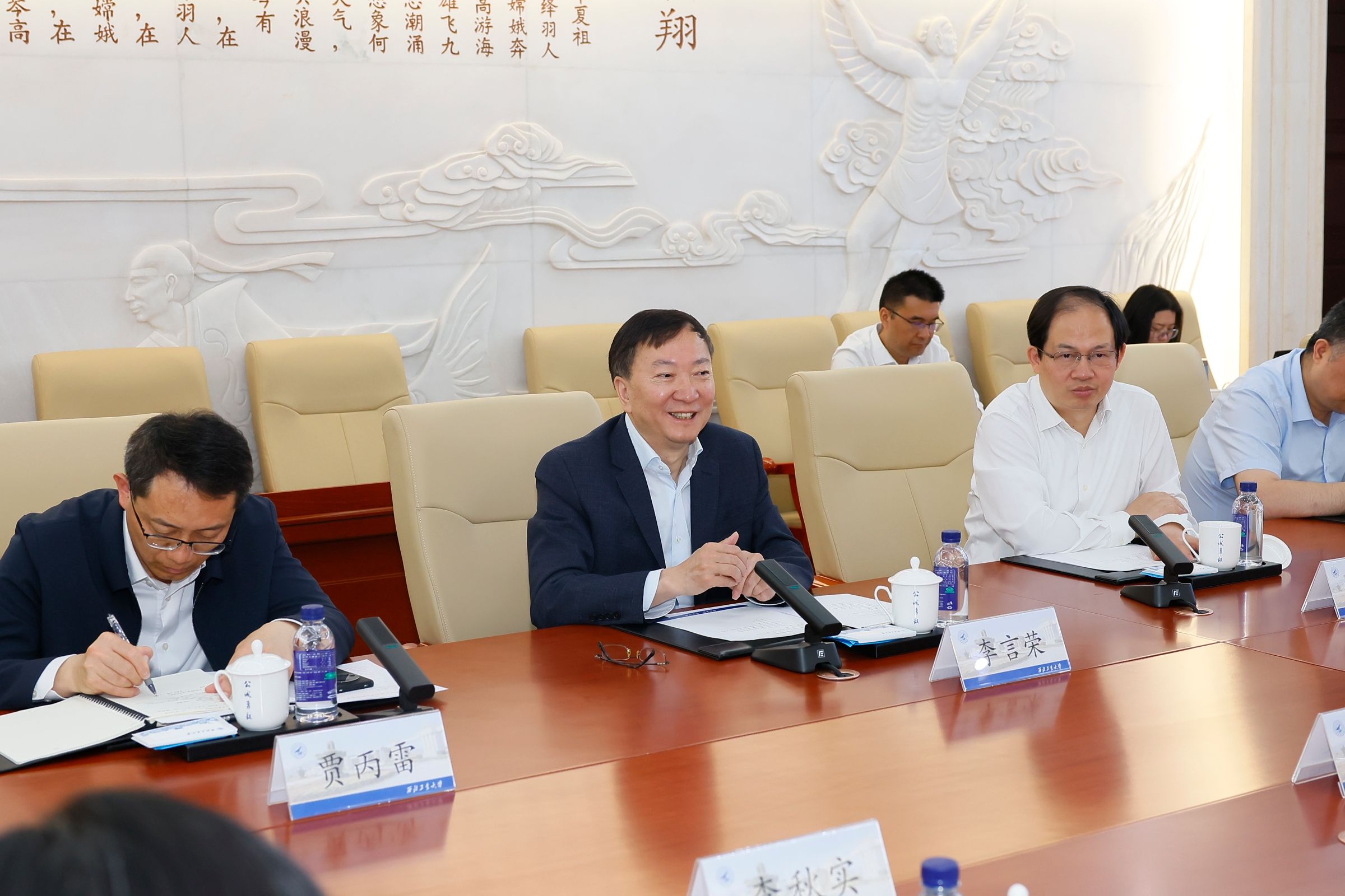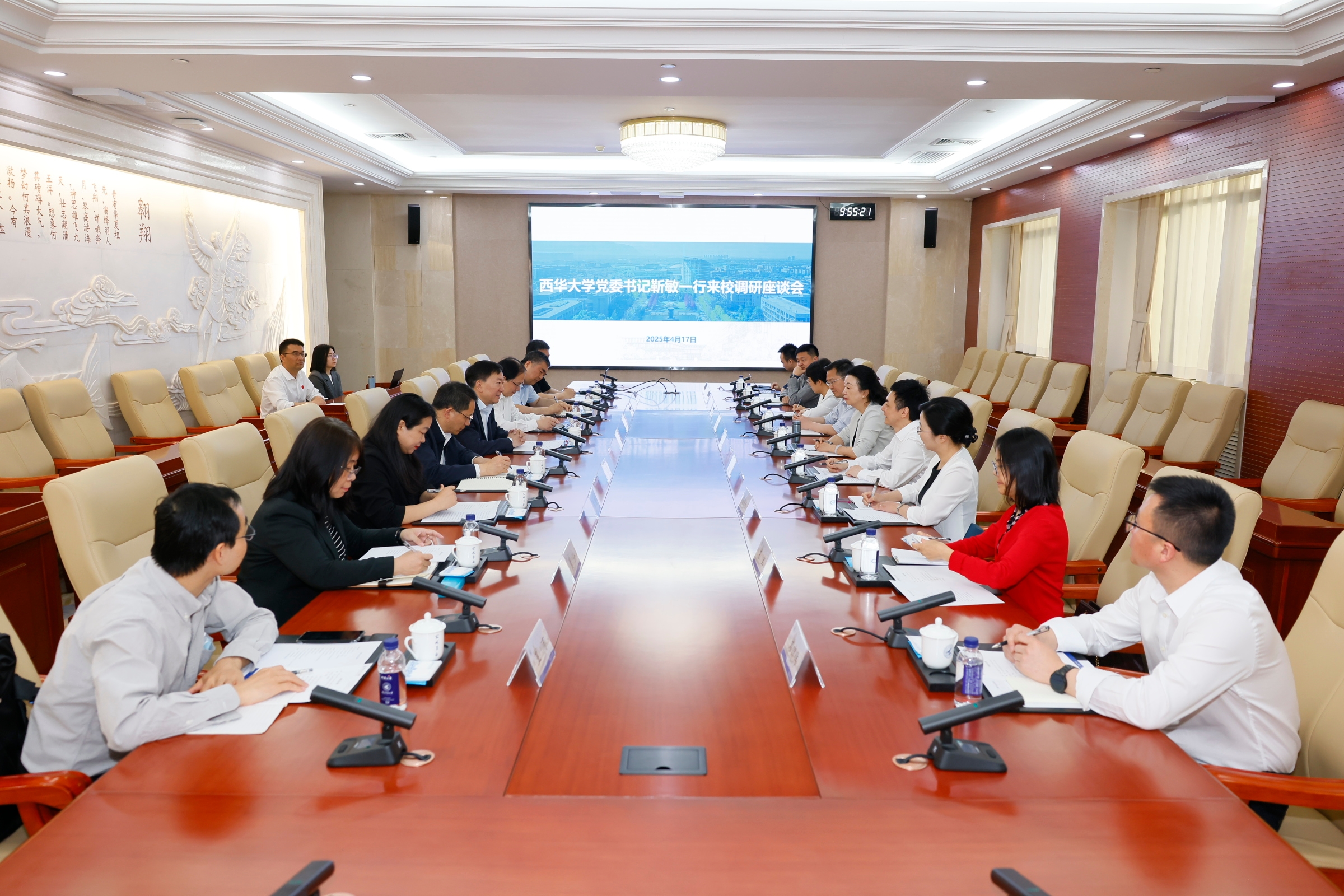 4月17日,西华大学党委书记靳敏,校长李秋实,副校长郎方年一行来校调研。必赢官网党委书记李言荣与靳敏、李秋实一行进行座谈。副校长杨益新参加相关活动并主持座谈会。