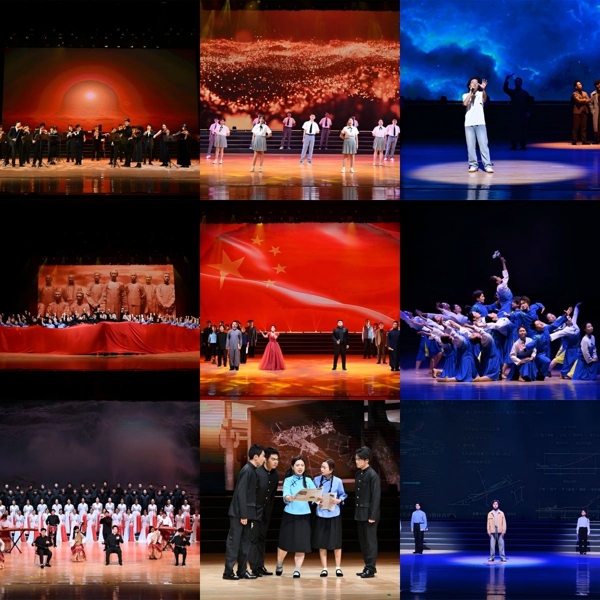 本次思政课分为“青年何谓”“青年何为”“青年何往”三个篇章,以舞台表演为载体回顾中国共青团百年历程,展现当代西工大学子昂扬的精神风貌,奏响新时代青年的奋进之声。交响曲《太阳照常升起》为本场演出拉开序幕。舞蹈《茉莉芬芳》以象征纯洁的茉莉花致敬先辈们对祖国清澈的爱;民乐合唱《保卫黄河》、短剧《烽火一课》饱含青年落子无悔的选择与诉说;合唱《国际歌》表达了同学们对世界和平与发展的美好愿景;短剧《远洋来信》、情景诵《等待》展现出万千先辈为报效祖国无私奉献的精神;合唱《理想》、舞蹈《晨光曲》蕴含青年奋勇前进的昂扬姿态;短剧《归来》、歌曲《如愿》表达了青年对未来的美好愿景;歌曲《有我》、朗诵《且听龙吟》、舞蹈《乘风时刻》无一不展现出青年学子敢作敢为又善作善成的品质。歌曲《错位时空》联结历史与现实,歌曲《国旗之下》诠释着青年学子对祖国最深沉的热爱。