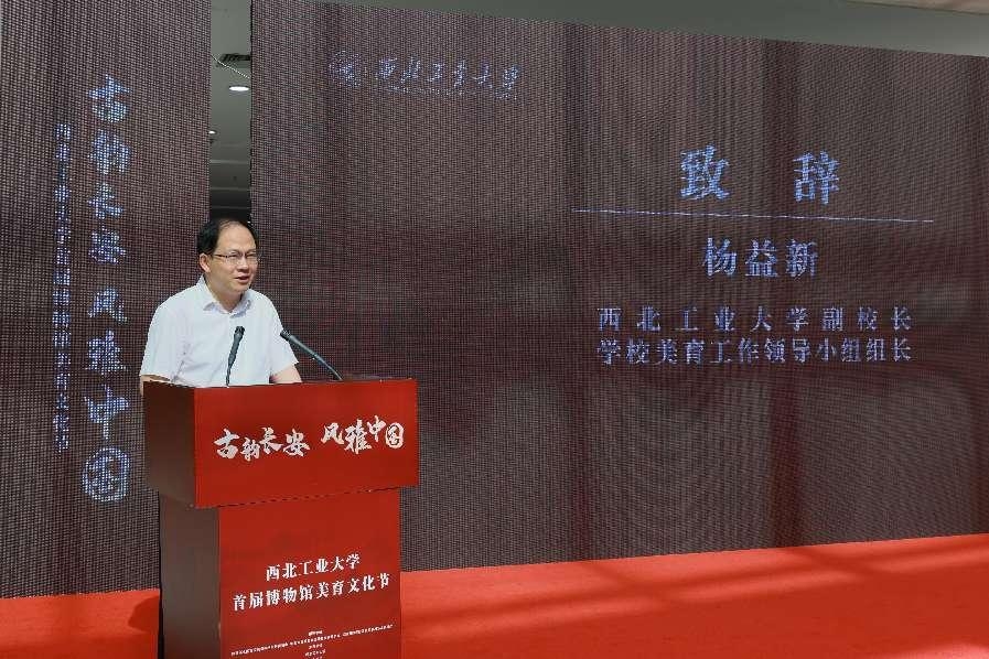 杨益新代表学校致欢迎辞,他表示要充分发挥陕西丰富的文博资源优势,促进文化资源与教育资源、科技创新成果的深度融合,以新技术助力博物馆创新发展,凝聚起推动文博发展的西工大青年力量。