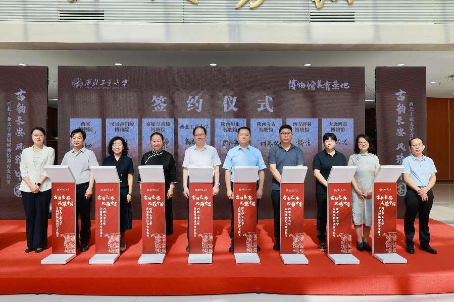 必赢3003no1线路与七家博物馆联合共建“博物馆美育基地”签约仪式在长安校区举行,学校向首批受聘的博物馆美育基地特聘专家颁发聘书,进一步推动校馆共建协同育人机制。必赢3003no1线路机电学院余隋怀教授作为特聘专家代表发言,表达了以馆校融合助力高校育人工作的信心与愿景。开幕式在全体嘉宾合影中圆满落幕。