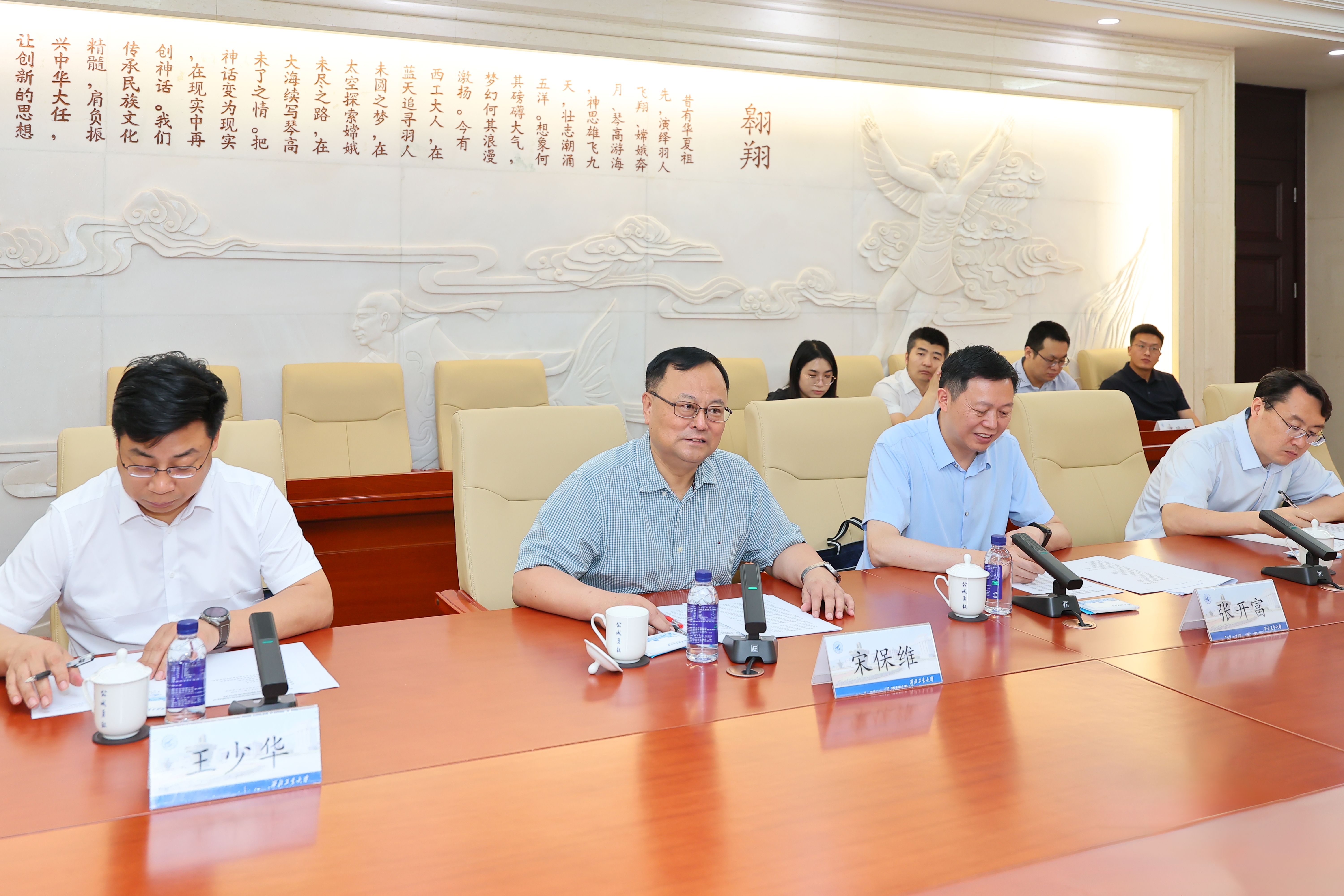 宋保维对黄维娜一行来校调研交流表示欢迎。他表示,中国航发贵阳所为我国多型飞机发动机的自主研发提供了高效、可靠的解决方案,黄维娜总师是航空发动机领域的领军人才,为我国国防武器装备现代化建设作出了突出贡献。西工大在航空、航天、航海等领域学科专业内涵特色鲜明。希望双方进一步拓展在科技创新、人才培养、科研平台等方面的深度合作,助力我国在航空动力、海洋动力等领域高质量发展,为加快实现高水平科技自立自强贡献新的更大力量。