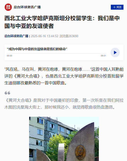 经过两年建设,哈分校已从蓝图变为现实。这座横跨欧亚的学术桥梁,不仅开创了中哈教育合作的新范式,更为构建人类命运共同体提供了生动实践样本。目前,哈分校学生的在华求学故事已在“中国—中亚”机制二周年之际被央视、《科技日报》等媒体报道,成为世界观察中哈合作的窗口。哈分校用两年时光,书写了一部“教育合作破冰、科研协同攻坚、人文交流润心”的合作史话。