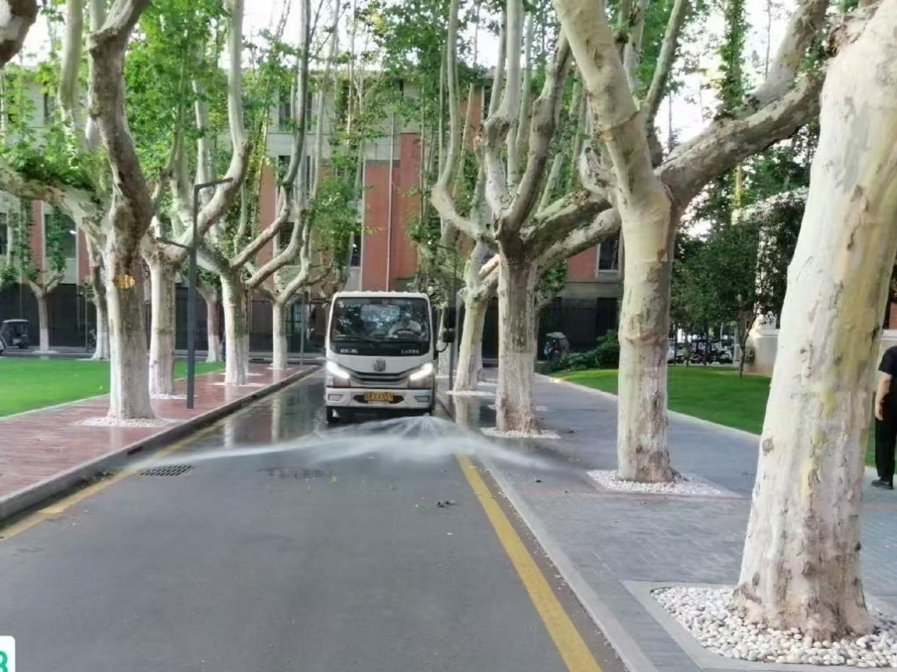 五、推行精细化保洁,持续打造清新校园。好环境既要建好,更要维护保养好。然而春有飞絮、夏有扬尘、秋有落叶、冬有积雪——在北方气候条件下,如何保持校园环境整洁优美?后勤集团以精细化、科学化管理为抓手,升级《校园环卫作业手册》,制定“季节差异化”保洁方案。根据季节特点每日对校园进行多次洒水作业,对教学区以及住宅区柳荫路、槐荫路等主干路段实施“冲洗+机扫+人工”三位一体保洁。推行“网格化管理”,强化“早间午间夜间普扫、延时保洁,其余时间巡扫”模式。从“风起尘扬”到“窗明几净”,后勤人用辛勤的汗水守护着校园的每一个角落。