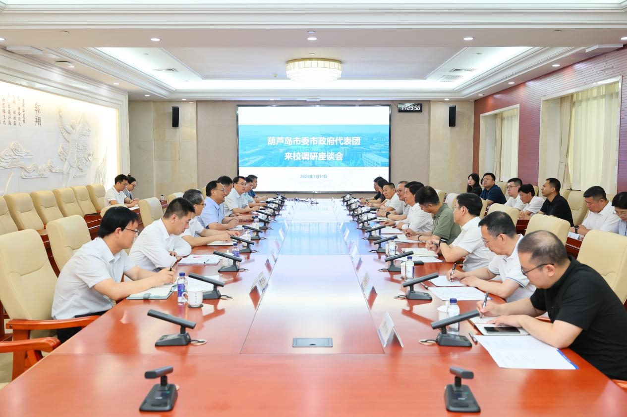 7月10日,葫芦岛市委书记杨军生一行来校调研。校长宋保维与杨军生一行进行会谈。座谈会由副校长张开富主持。