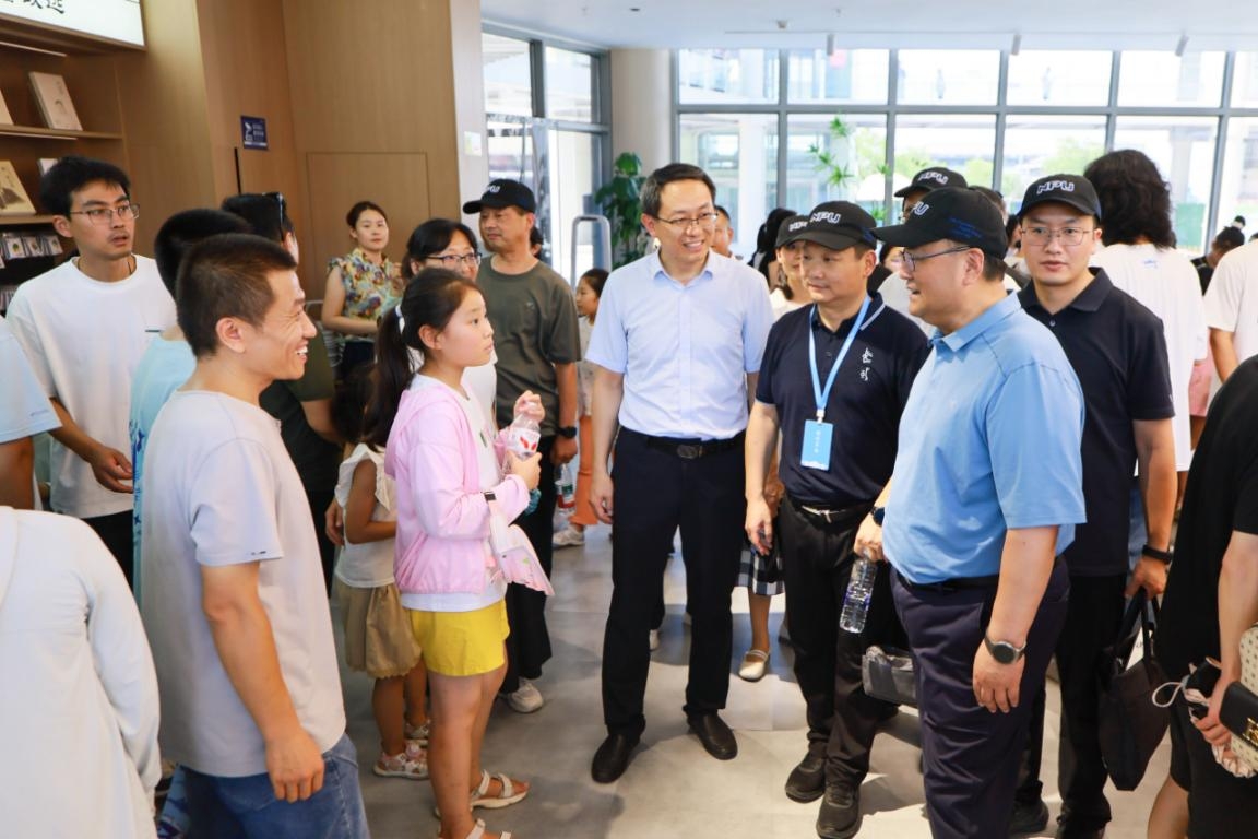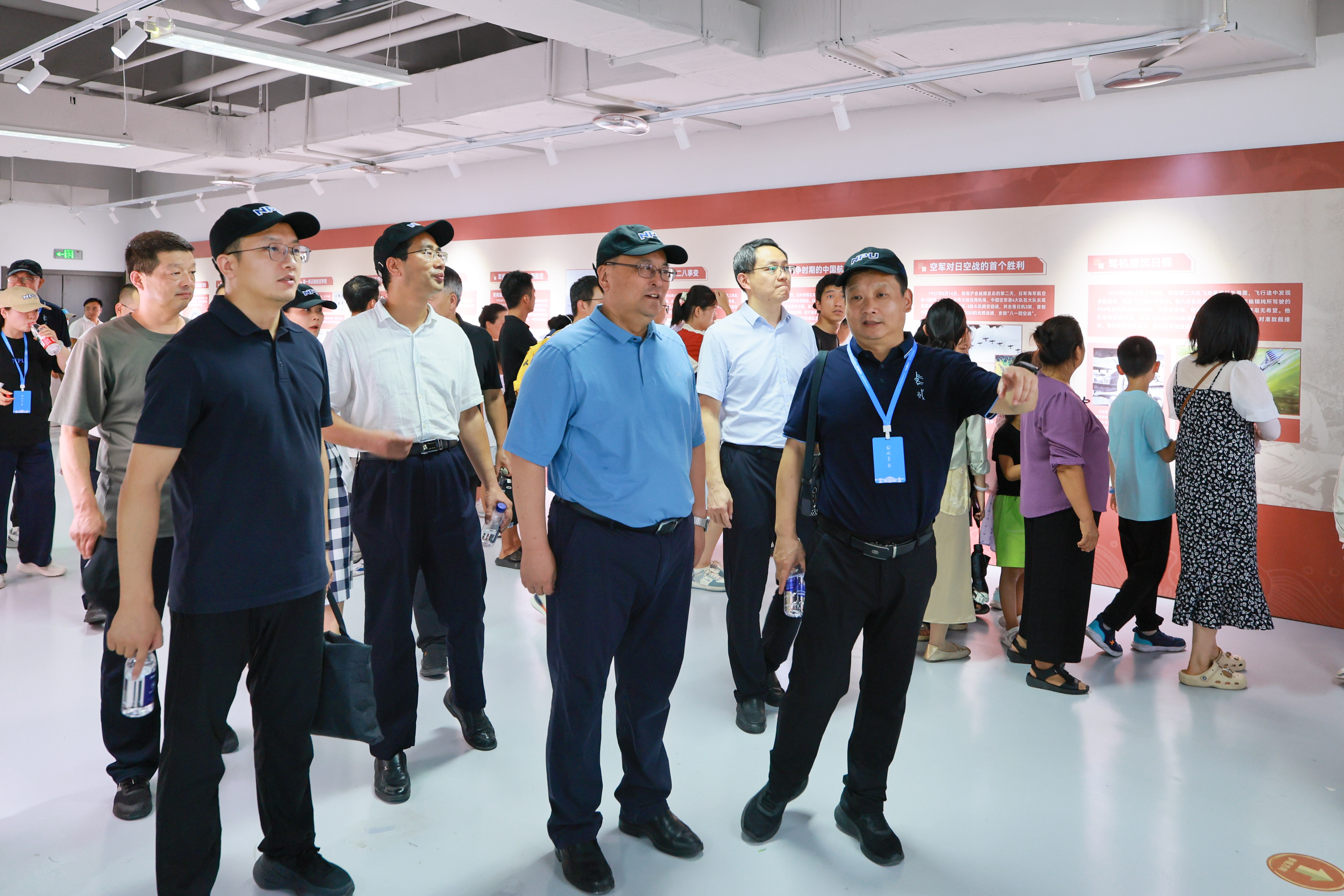 宋保维实地检查了预约门禁、综合服务中心、中国航空史临展厅、室外展场等情况,对军工素质教育实践中心区域环境提升和运行秩序表示肯定,对一线同志战高温斗酷暑确保校园有序开放表示感谢。调研过程中,宋保维详细询问暑期校园开放期间入校访客情况、运行服务状况、安全管理措施等,并与参与运行服务保障的志愿者以及预约来校参观的青少年与家长亲切交流。“同学从哪里过来的,了解西工大吗?停机坪上的机型认识多少?”“欢迎有志青少年报考西工大,投身国家航空航天航海事业。”“感谢大家对西工大的喜爱,参观期间有任何问题都可以联系我们的现场工作人员。”