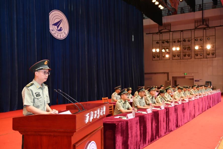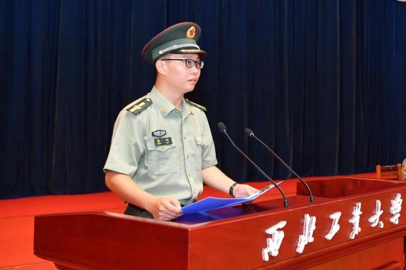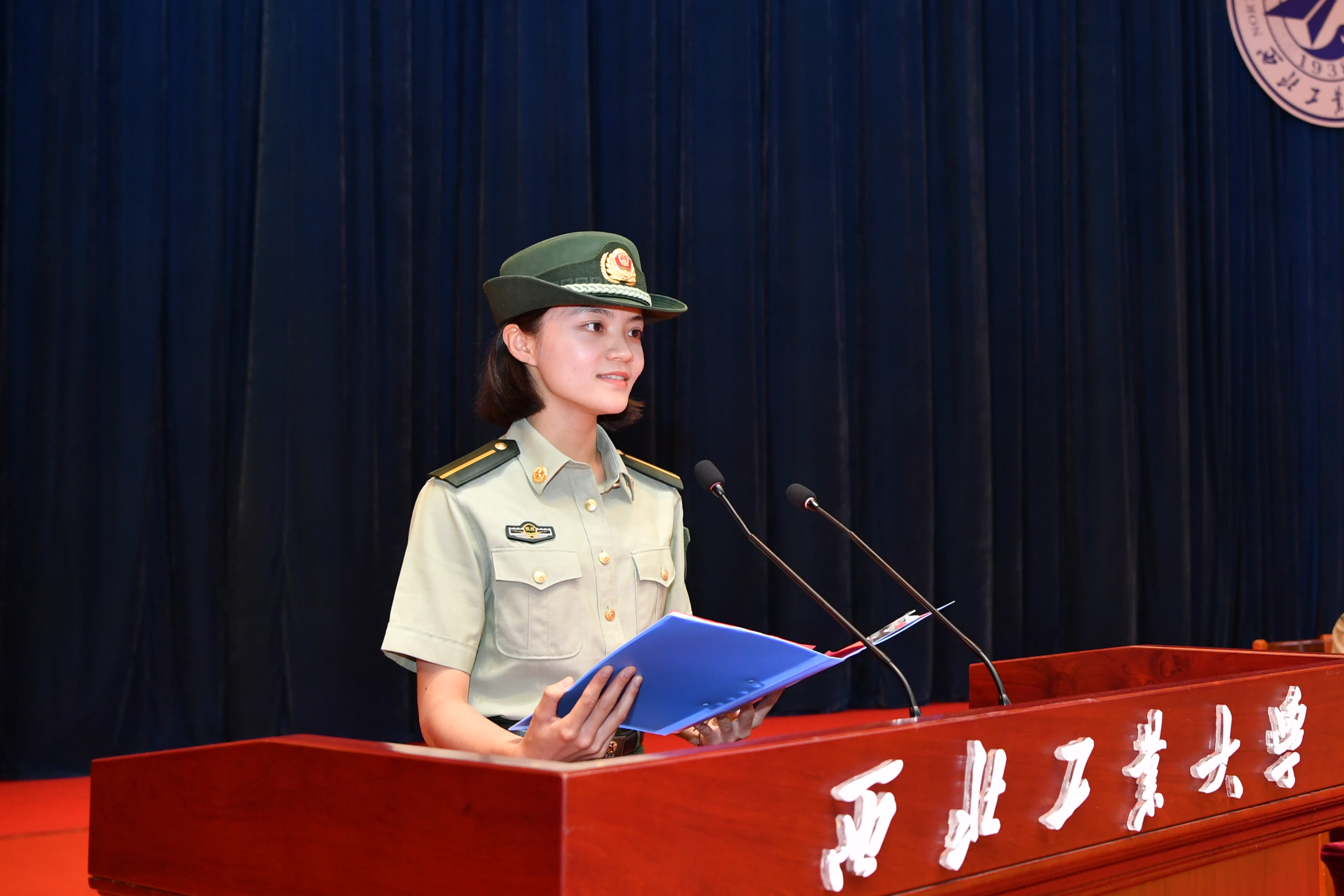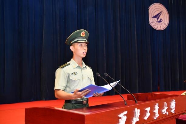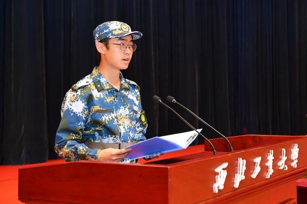 二团十连学员秦晋代表2024级参训学生发言,他表示将以最饱满的热情投入军训时光,以最整齐的步伐、最昂扬的姿态,交出一份属于西工大学子的青春答卷。六团四十八连学员庞安格代表2025级新生庄严承诺,要以军人的标准严格要求自己,以奋斗的姿态迎接挑战,为成为一名真正的西工大人奠定坚实的第一步。