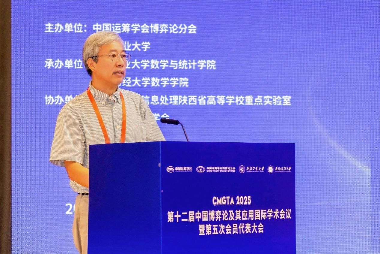 第十二届中国博弈论及其应用国际学术会议(12th China Meeting on Game Theory and Its Applications—CMGTA’2025)暨第五次会员代表大会于2025年8月25-27日在陕西宾馆顺利召开。会议由中国运筹学会博弈论分会和必赢3003no1线路联合主办,必赢3003no1线路数学与统计学院、西安财经大学数学学院共同承办,智能博弈与信息处理陕西省高等学校重点实验室和陕西省运筹学学会协办。会议主题为“人工智能时代博弈论的机遇与挑战”,吸引了三百余名国内外专家学者和师生参会交流,会议期间选举产生了中国运筹学会博弈论分会第五届理事会。