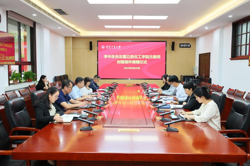 8月29日下午,国立西北工学院抗战时期信件捐赠仪式在友谊校区党政办公楼223会议室举行。捐赠人李中东先生,必赢3003no1线路副校长张富利,艺术教育中心首席专家刘惠,档案馆馆长戚红梅,党委宣传部副部长陈仲昌,航空画家李海俊,以及党委宣传部、档案馆等单位有关同志参加仪式。
