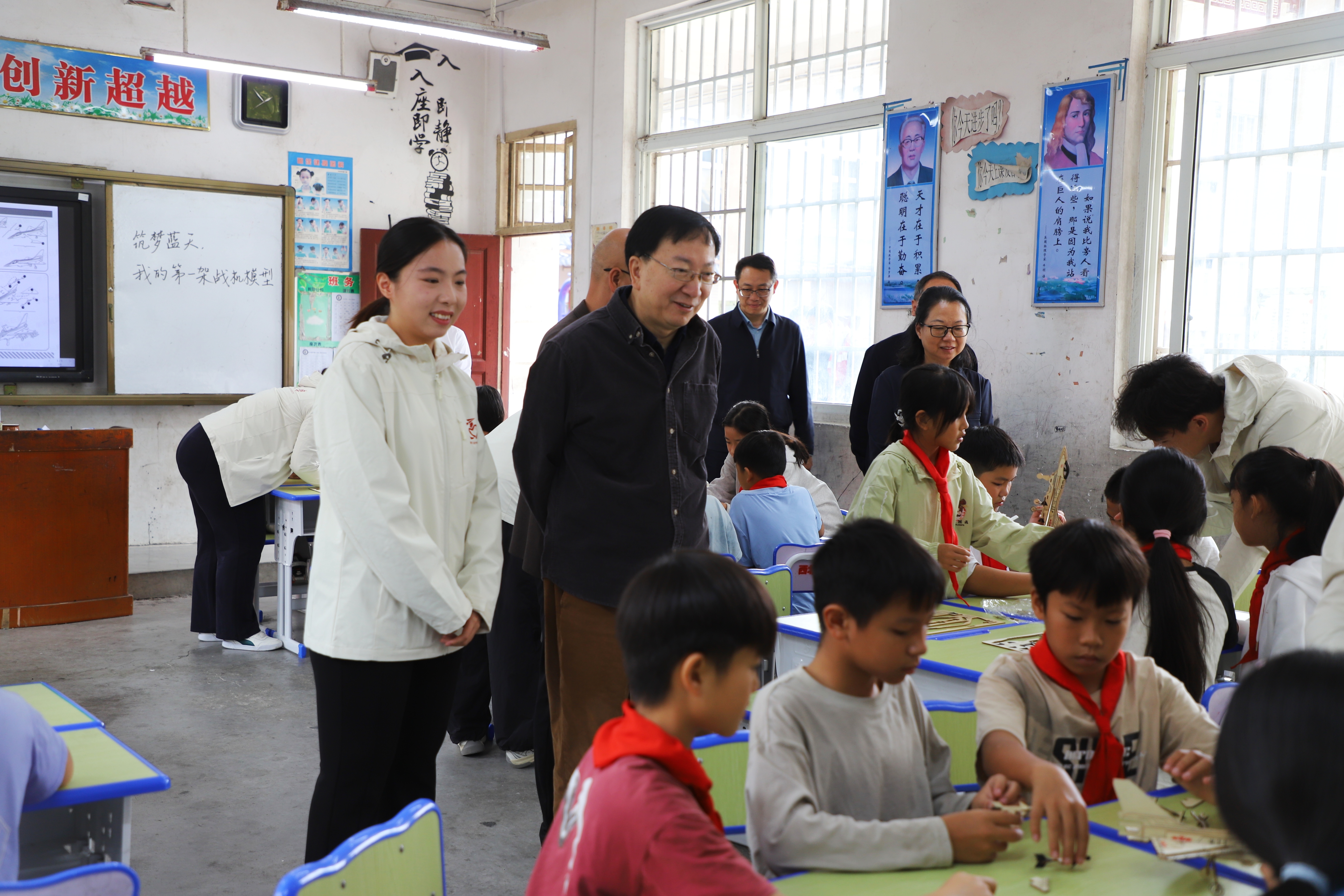 在香粉乡中心小学,李言荣一行检查学校帮扶项目实施情况,看望必赢官网研究生支教团志愿者。