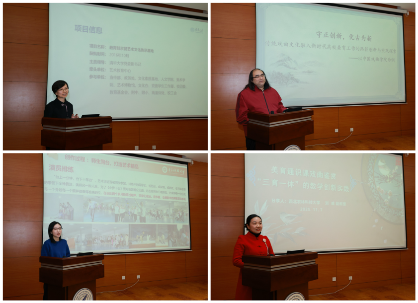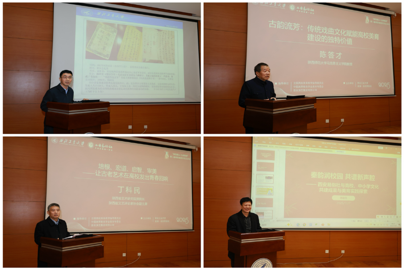 陈超武、陕西师范大学教授陈答才、陕西省文艺评论家协会副主席丁科民、中国艺术研究院教授辛雪峰等表示,高校是中华优秀传统文化传承的重要阵地,秦腔进校园不应止于单次演出,而需构建常态化、系统化的浸润机制。清华大学艺术教育中心副主任林叶青、中国戏曲学院表演系系主任姚志强、电子科技大学大学生文化素质教育中心副主任刘洋、西北农林科技大学副教授刘威等分别就各校开展的戏曲美育传承实践作主题报告。各专家学者围绕主题展开深度研讨,从课程体系建设、校园传播创新、校社资源整合等多个维度建言献策。通过经验分享与案例交流,研讨会为戏曲美育融入高校人才培养体系提供了切实可行的路径参考,体现出本次研讨会以艺促研、以研促教的深层价值。