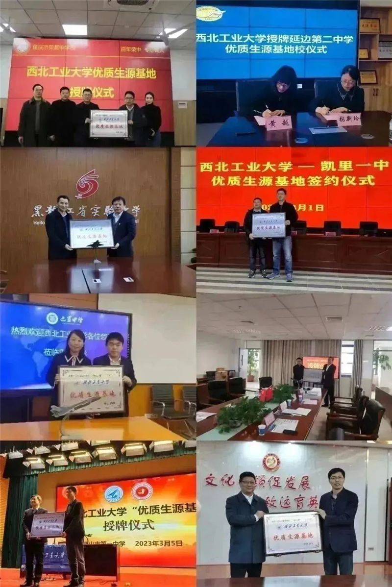 优质生源基地建设是学校招生工作的重要举措,也是加强“大学-中学”衔接教育的重要一环。各学院招生组主动与各省份重点生源中学联络沟通,通过签订合作协议,在科普讲座、来校访学、人才创新培养等方面为中学提供全面服务,架起了双方紧密合作的桥梁,建立了选拔输送更多优秀人才的有效途径,为西工大和各中学良性互动创造了有利条件。