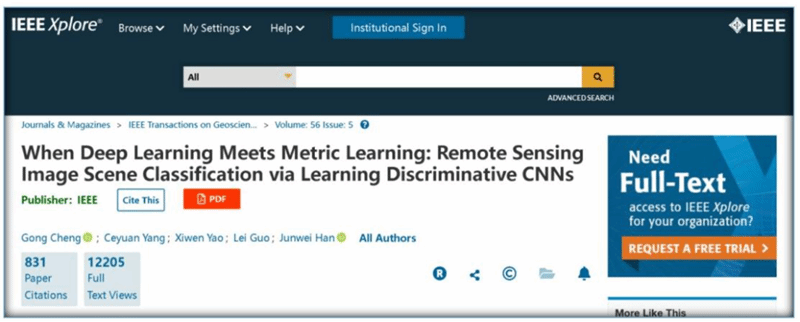 这是该研究团队近三年第三次斩获顶级国际学术奖。其两篇论文[2][3]还分别获得了2021年度IEEE地球科学与遥感学会最有影响力论文奖(中国科研机构独立完成工作首次获奖)、多媒体领域顶级国际期刊《IEEE电路系统视频技术汇刊》(IEEE TCSVT)2021年度最佳论文奖(设奖30年来第二篇中国科研机构独立完成工作获奖)。
