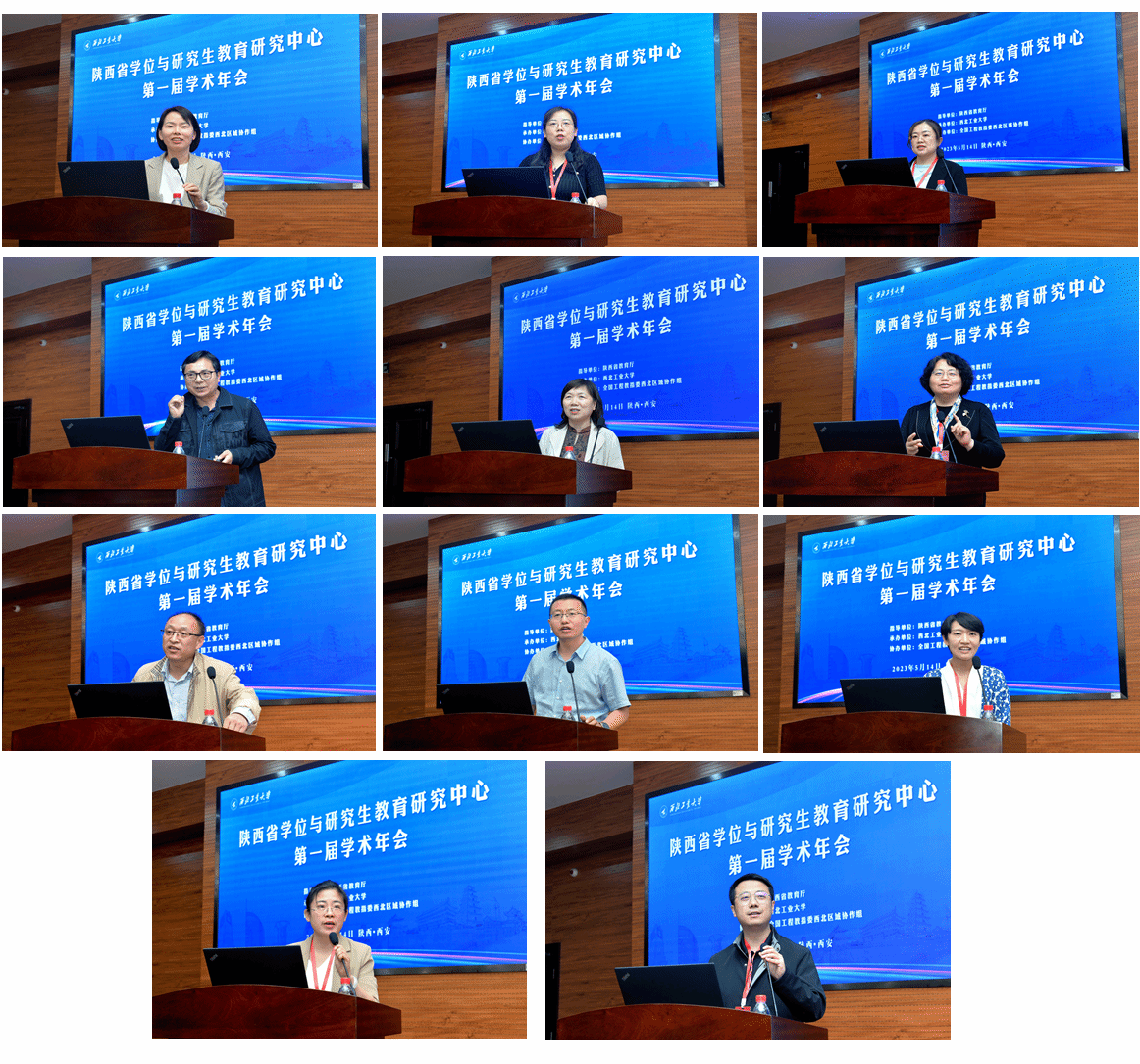 专题报告环节中,南京农业大学发展规划处处长罗英姿、西安交通大学社会科学处处长梅红、西北农林科技大学党委研工部副部长兼研究生院副院长韩娟、陕西师范大学民族教育学院院长龙宝新、西北大学高等教育研究中心主任姚聪莉、延安大学高等教育研究所副所长乔刚等11位专家学者围绕工程类专业学位博士教育培养、中国高校实践育人、涉农专业学位研究生教育“项目制”改革、大团队背景下文科研究生学术指导体系、双一流”高校教师学科交叉任职、研究生教育心灵治理、研究生主体地位转变、专业学位研究生教育质量保障机制、导师能力提升机制、新时代研究生思想政治教育、医学博士“申请-审核”制招生等方面分别做了专题汇报分享。
