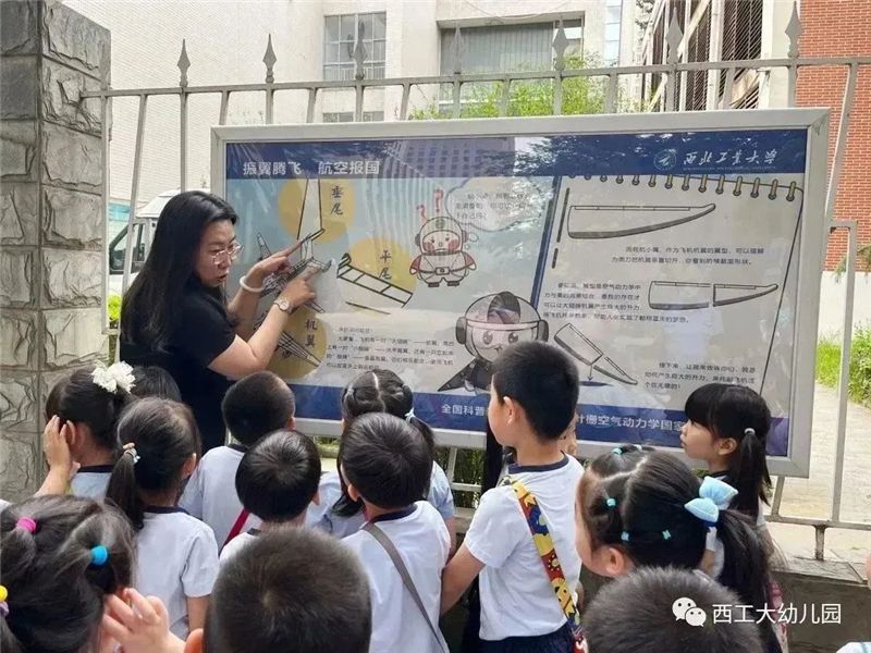 为了迎接孩子们的到来,西工大航空学院飞行器空气动力学系的领导和老师们进行了精心的安排和准备,还为幼儿园赠送了《振翼腾飞 航空报国》科普画册。通过科普画册,孩子们提前认识了“航小翼”和“航小栅”。