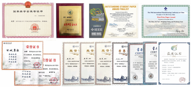 研究生期间,他以第一/学生第一作者在Nano Energy、IEEE JMEMS等领域权威期刊发表高水平论文6篇,其中SCI论文3篇、 EI论文3篇。在2021年,连续获得MEMS领域两大论文奖,第十九届国际制造会议(IMCC 2021)优秀论文一等奖和微机电系统国际会议(MEMS 2021)杰出学生论文提名奖,均为当届会议中国学者取得的最高奖项。
