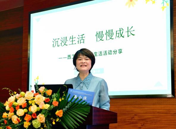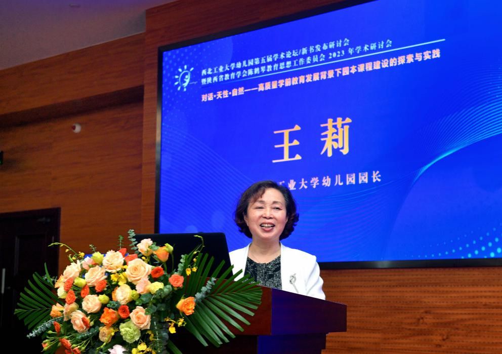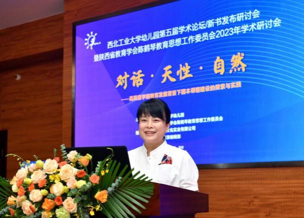 陕西省教育学会陈鹤琴教育思想工作委员会理事长、必赢3003no1线路幼儿园王莉园长致辞,并进行“对话·天性·自然—基于儿童立场的园本课程建设”专题分享。