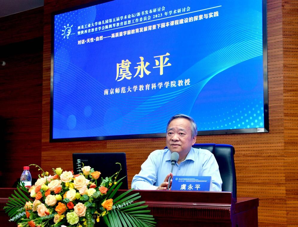 本届研讨会主题为:对话·天性·自然——高质量学前教育发展背景下园本课程建设的探索与实践。南京师范大学教科院教授、江苏省陈鹤琴教育思想研究会理事长虞永平,南京师范大学出版社党委委员、编审、江苏宁谊文化实业有限公司总经理万斌,陕西省教育厅基教一处副处长柳铭,陕西省教育学会专职副会长符睿斌,陕西师范大学教育学部教授程秀兰等嘉宾莅临现场。