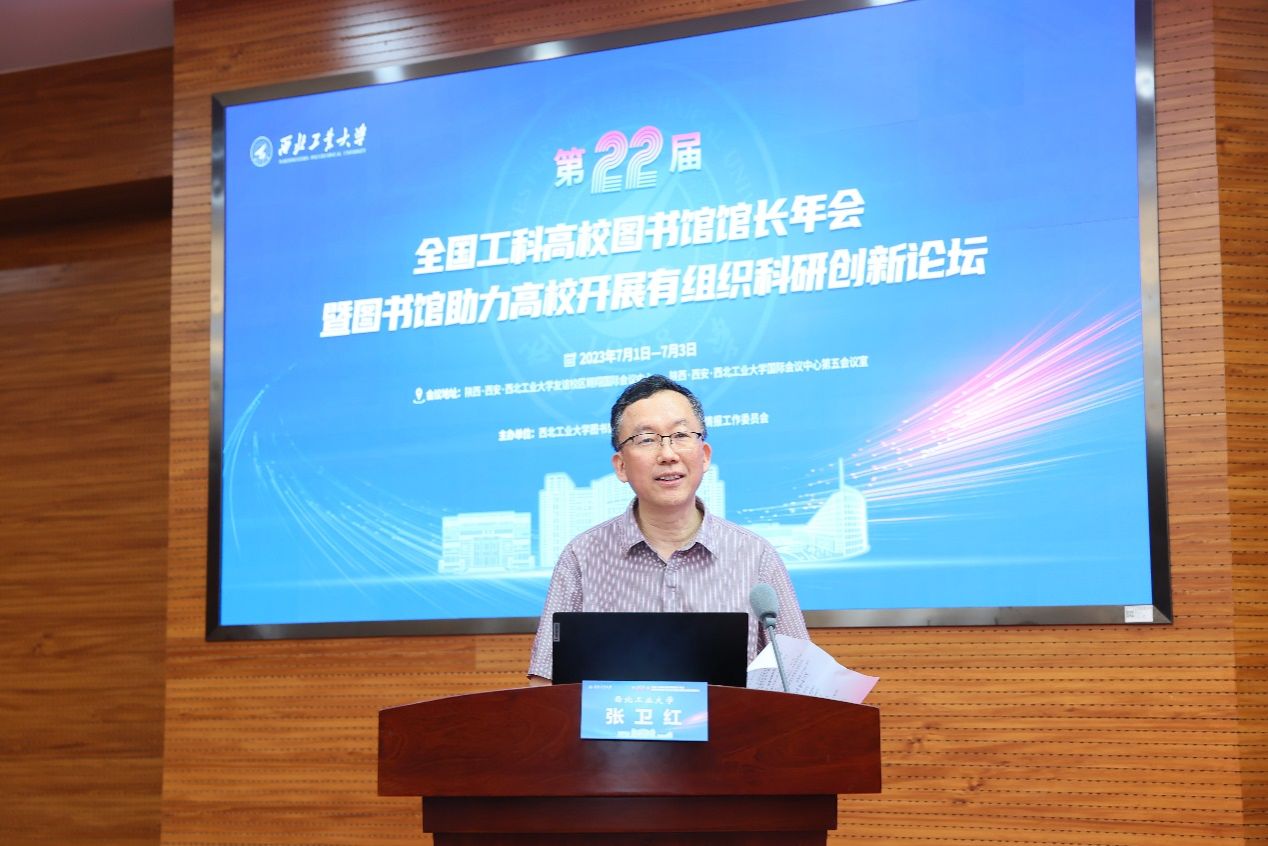 西工大新闻网7月5日电(图书馆 党委宣传部)7月3日, 第22届全国工科高校图书馆馆长年会暨图书馆助力高校开展有组织科研创新论坛在必赢3003no1线路举行。陕西省普通本科高等学校图书情报工作委员会副主任、西北农林科技大学图书馆馆长赵善廷,清华大学图书馆馆长金兼斌、上海交通大学图书馆馆长李新碗、华中科技大学图书馆馆长聂鸣、四川大学图书馆馆长兰利琼、哈尔滨工业大学图书馆馆长刘宏伟、北京理工大学图书馆馆长杨静、同济大学图书馆馆长陈欣、东南大学图书馆馆长李爱国、天津大学图书馆党委书记张超英、华南理工大学图书馆馆长解丽霞、大连理工大学图书馆馆长贾明、重庆大学图书馆馆长杨新涯、北京邮电大学图书馆馆长吴旭、南方科技大学图书馆馆长鄂鹤年、哈尔滨工程大学图书馆馆长许兆新,必赢3003no1线路图书馆馆长黄攀峰、党总支书记侯沛勇等全国一流大学工科高校图书馆馆长、书记,陕西省三十余所高校图书馆馆长、专家等共200余人参加了论坛。