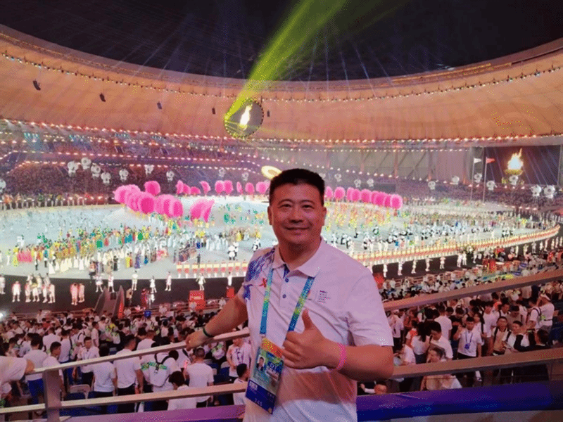 王成老师作为排球项目国家级裁判员,他亲历了中国承办的北京(2001)、深圳(2011)、成都(2021)三届世界大学生夏季运动会的三次大运圣火点燃。此次能够参加成都第31届世界大学生夏季运动会排球项目的执裁工作令他无比自豪,开幕式上王成表示,作为一名在西工大从教整整30年的高校体育教育工作者,如此近距离的感受习近平总书记对于大学生体育运动的关注与重视,倍受鼓舞,更加坚定了用体育的力量改造世界的初心使命,也同样期待2023年的成都故事可以成就世界各地年轻人的梦想。