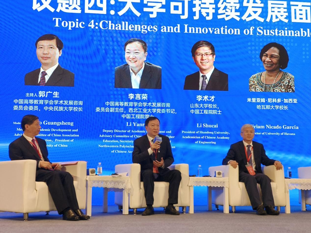西工大新闻网8月3日电 7月30日-31日,由中国高等教育学会、北京大学、清华大学共同举办的世界大学校长论坛,在北京怀柔雁栖湖成功举办。全国人大常委会副委员长、民盟中央主席、欧美同学会会长、中国科学院院士丁仲礼出席论坛开幕式并讲话。教育部党组书记、部长怀进鹏会见了出席世界大学校长论坛的大学校长代表。教育部副部长、中国工程院院士陈杰,北京市人民政府副市长刘宇辉出席开幕式并致辞,联合国教科文组织教育助理总干事斯蒂芬尼娅·贾尼尼作视频致辞。