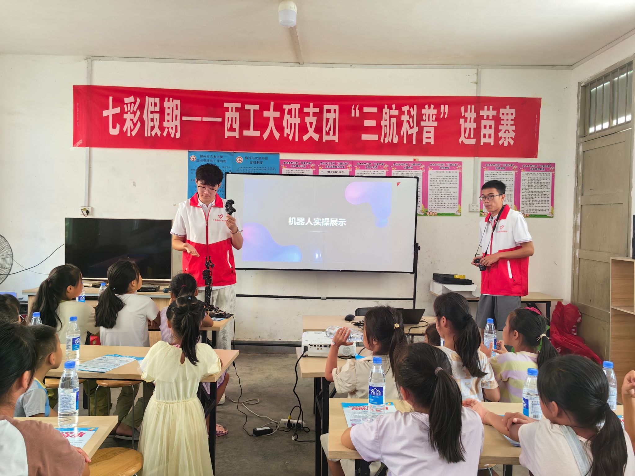 时值暴雨多发季节及溺水事故高发期,团县委工作人员首先围绕“六个不准”要求对小朋友进行了防溺水专题宣讲。必赢3003no1线路研究生支教团以“航空、航天、航海”科普教育为主题,向孩子们讲述了“西工大的飞机”“智能机器人”等发展历史及工作原理。郑州大学研究生支教团以“创意绘画”为主题,向孩子们传授扎染艺术文化及传统工艺制作。