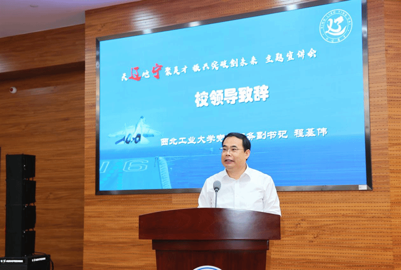 宣讲会上,程基伟代表学校对蒋天宝一行来校招才引人表示欢迎,对辽宁省长期以来对学校人才培养和就业工作的支持表示感谢。他表示,扎根西部、献身国防是西工大的神圣使命,学校始终坚持立德树人、育领军人才,科技创新、铸国之重器;坚持服务地方、把论文写在祖国大地上。辽宁产业基础雄厚,大国重器集成,聚集了一大批国防重企,是学校重要的合作伙伴,双方在人才培养、科学研究、成果转化等诸多领域都有良好进展,每年吸引众多西工大学子建功立业。希望通过此次宣讲活动的成功举办,同学们能够将个人志向和国家发展、民族振兴紧密连接起来,抢抓机遇,到国家需要的地方去建功立业。