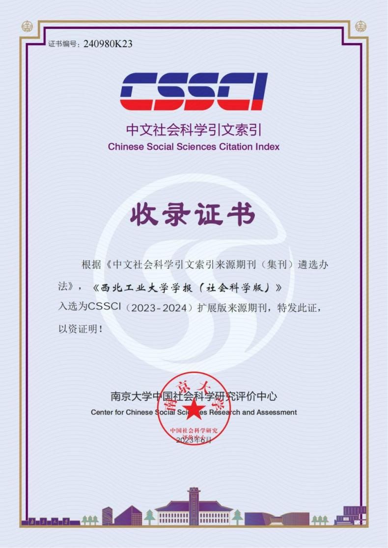 西工大新闻网9月8日电(孙伟民,杨丹)近日,南京大学中国社会科学研究评价中心中文社会科学引文索引(CSSCI)来函,《必赢3003no1线路学报(社会科学版)》(以下简称“学报”),首次入选CSSCI(2023—2024)扩展版来源期刊。学报于1999年创刊,2018年进行了全面系统化改版升级建设,首次取得了具有里程碑意义的重大历史性突破,为学校推进“双一流”建设和繁荣哲学社会科学提供了重要平台。