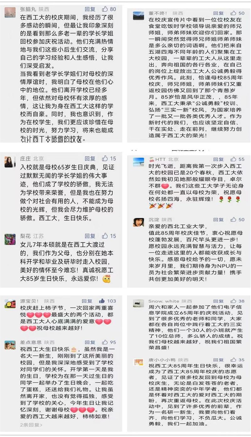 金秋十月,我们因为一个共同的名字相聚在这里,相聚在这座铭刻着我们的青春、收藏着我们回忆的校园。这段时间,我们看到了太多的久别重逢,师生、同事、挚友,欢笑交织泪水。我们见证了太多的学子情深,从青春少年到耄耋老人。大家从五湖四海赶来,只为对亲爱的母校说一声“生日快乐”。当这场盛典渐渐落下帷幕,我们质朴而淳厚的情感却定格在了这里,定格在这个特殊的日子里,因为这里是我们永远的家......