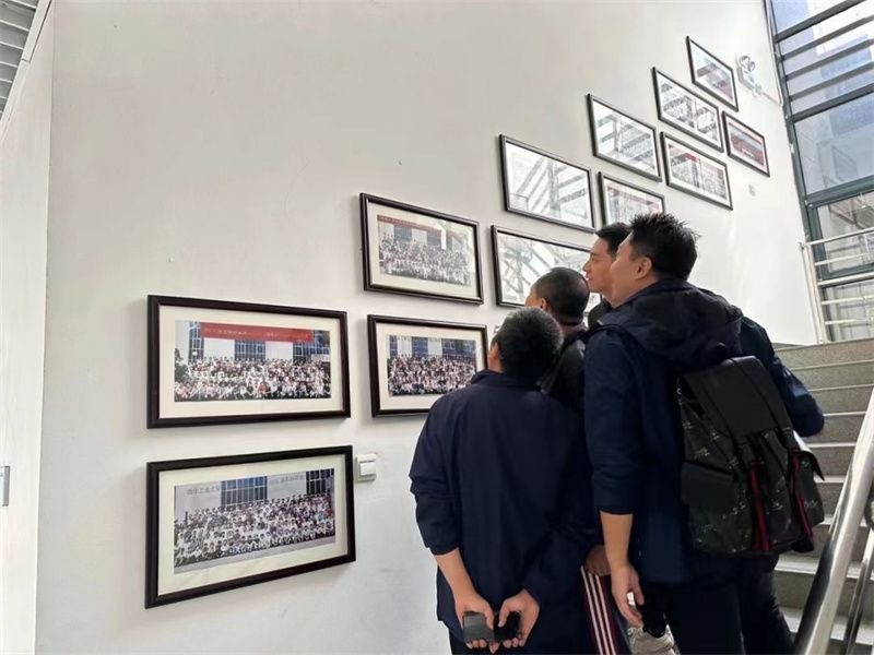 校友在学院精心布置的毕业合影前驻足良久,虽然过去很久,还是一眼就能找出当年那个意气风发的他。