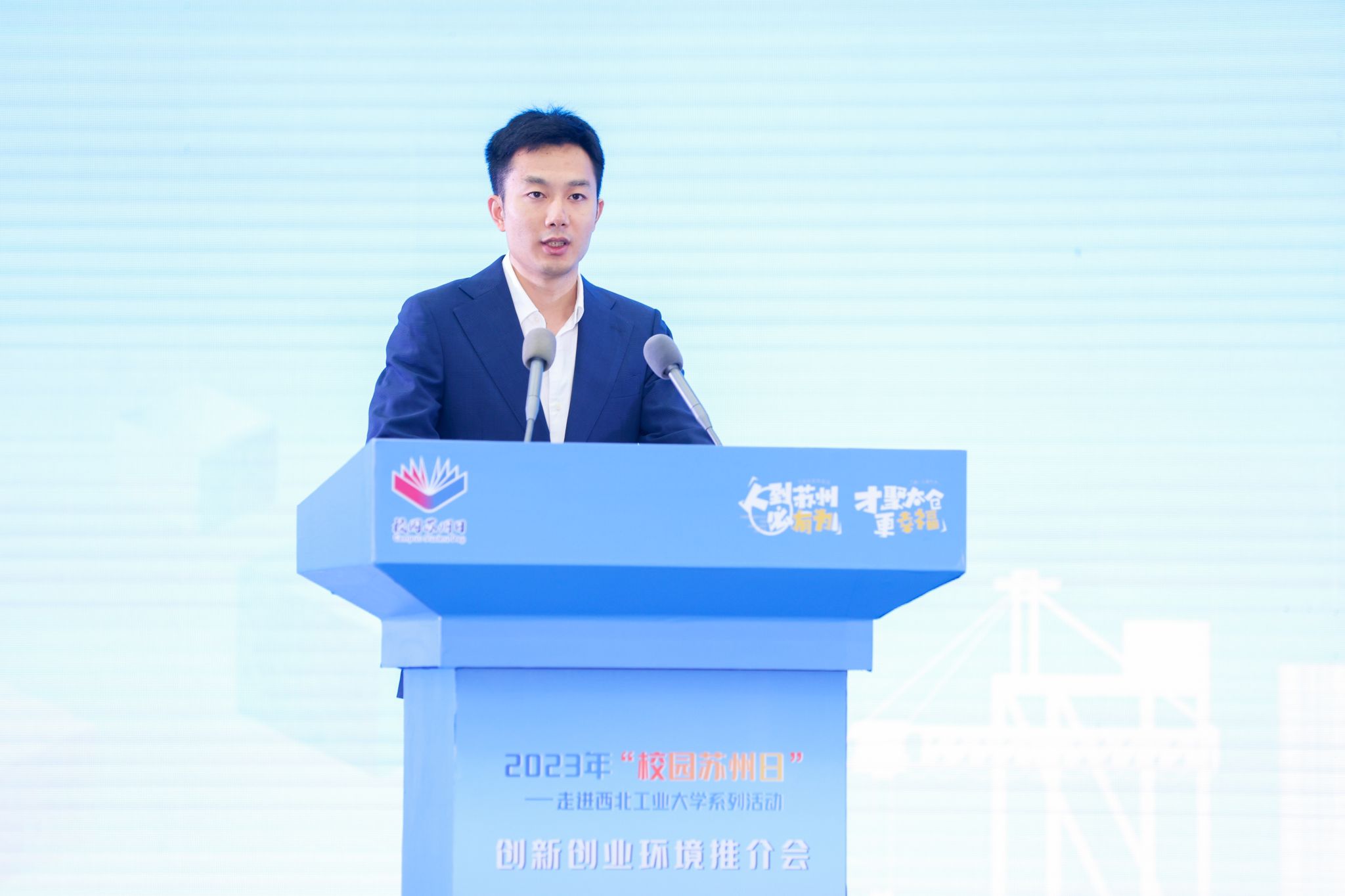 郭静作苏州创新创业环境推介。她表示,苏州的魅力,源自她是“融古贯今”的宜居福地,源自她是“机遇无限”的创新高地,源自她是“成人之美”的创业热土。苏州这片创新创业的沃土,正是可以让各位人才实现自我价值不断攀升的云梯。选择苏州,就是选择机遇;选择苏州,就是选择更美好的未来。诚挚邀请同学们把苏州作为梦想的起点、事业的舞台,与苏州共同成长、相互成就。