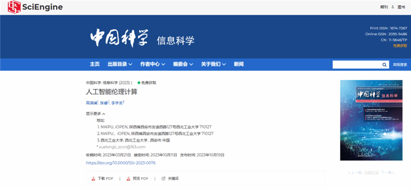 高漪澜, 张睿, 李学龙, 人工智能伦理计算, 中国科学: 信息科学, 2023, doi: 10.0000/SSI-2023-0076.