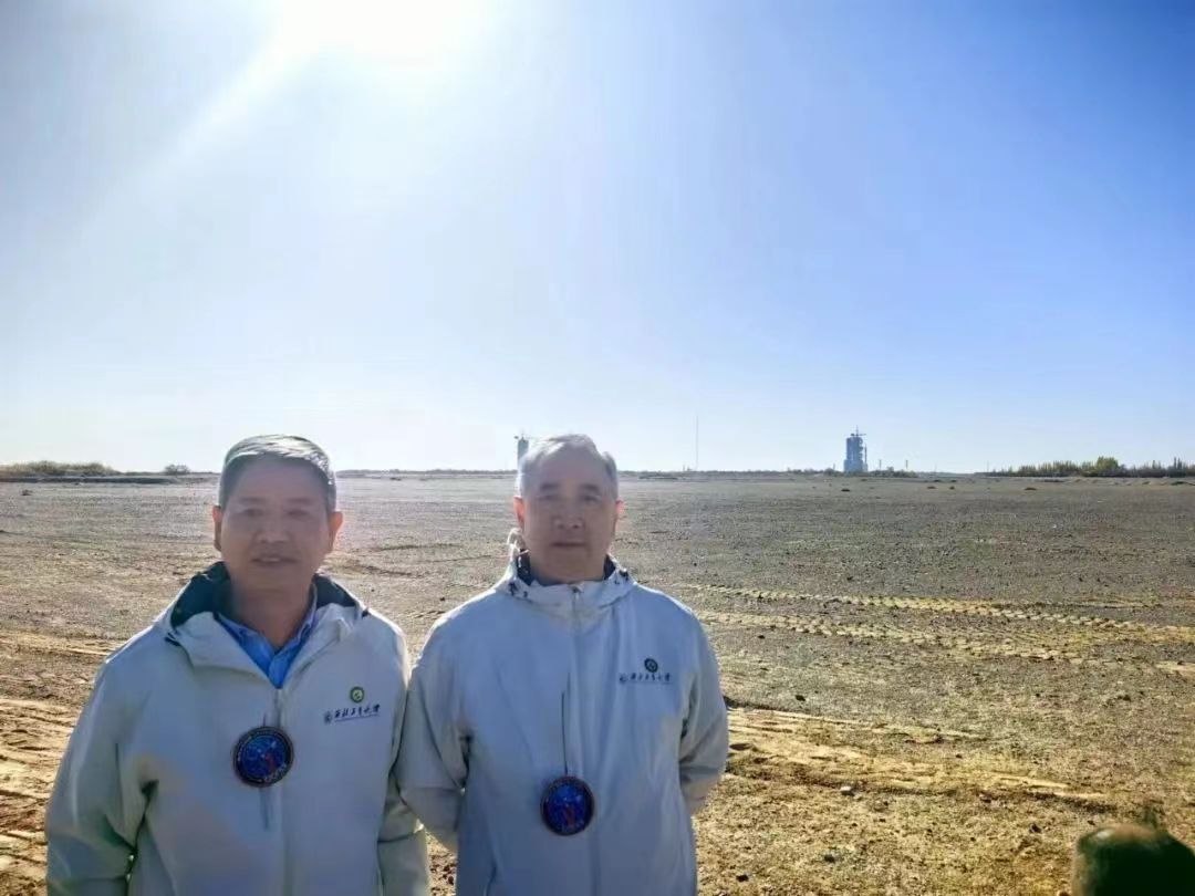“空间生命科学与航天医学团队”的商澎老师、杨周岐老师在发射现场合影