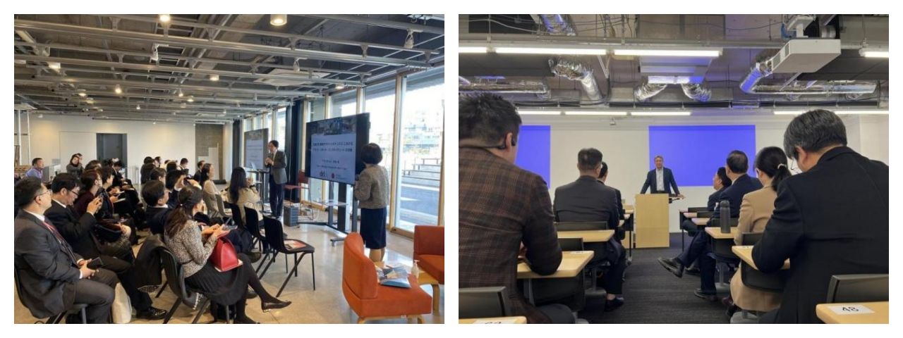 11月14日,代表团一行参加了第九届中日教育交流会开幕式,中国教育国际交流协会副秘书长傅博、日本文部科学省高等教育局参事官小林洋介、早稻田大学常任理事渡边义浩、中国驻日本大使馆公使衔参赞杜柯伟等领导和嘉宾出席开幕式并致辞,中国教育国际交流协会国际合作部主任刘轶博主持大会开幕式。