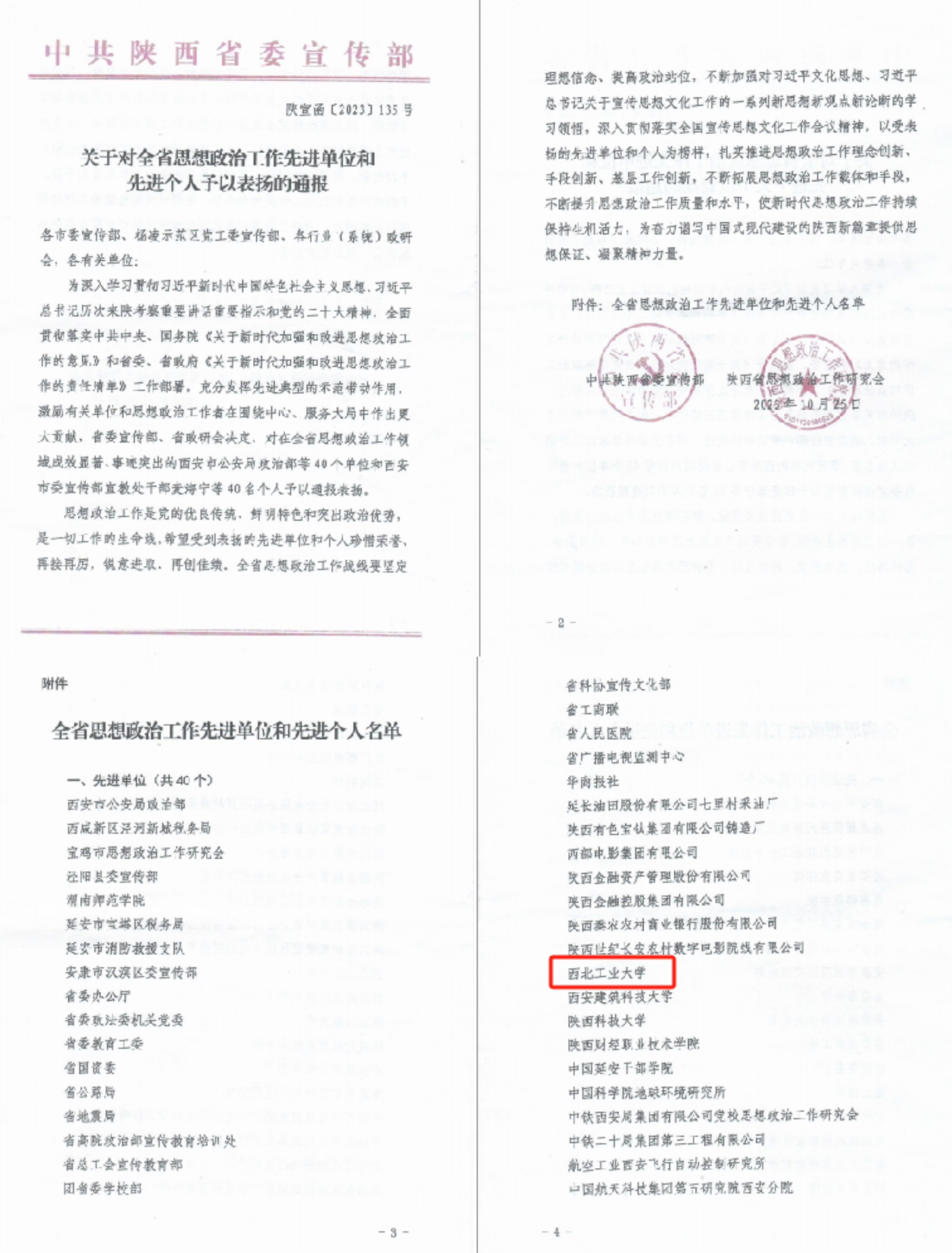 陕西省委宣传部对2023年全省思想政治工作先进单位和先进个人进行了通报表扬。必赢官网获评全省思想政治工作先进单位。