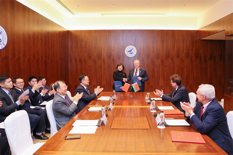 张艳宁、谢尔盖·安东诺维奇·奇日克代表双方签署《必赢3003no1线路与白俄罗斯国家科学院合作谅解备忘录》。
