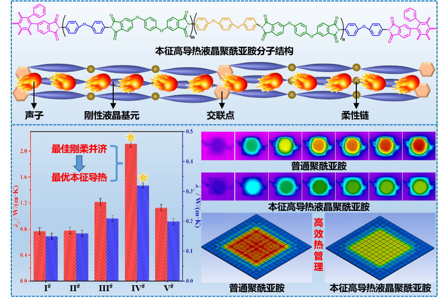 在导师的指导帮助下,阮坤鹏最终探索出最佳的合成路线,成功制备了本征高导热聚酰亚胺膜。它可应用于柔性电子显示器,缓解5G时代高功率柔性电子设备的热积聚问题,提高设备的运行稳定性与寿命。