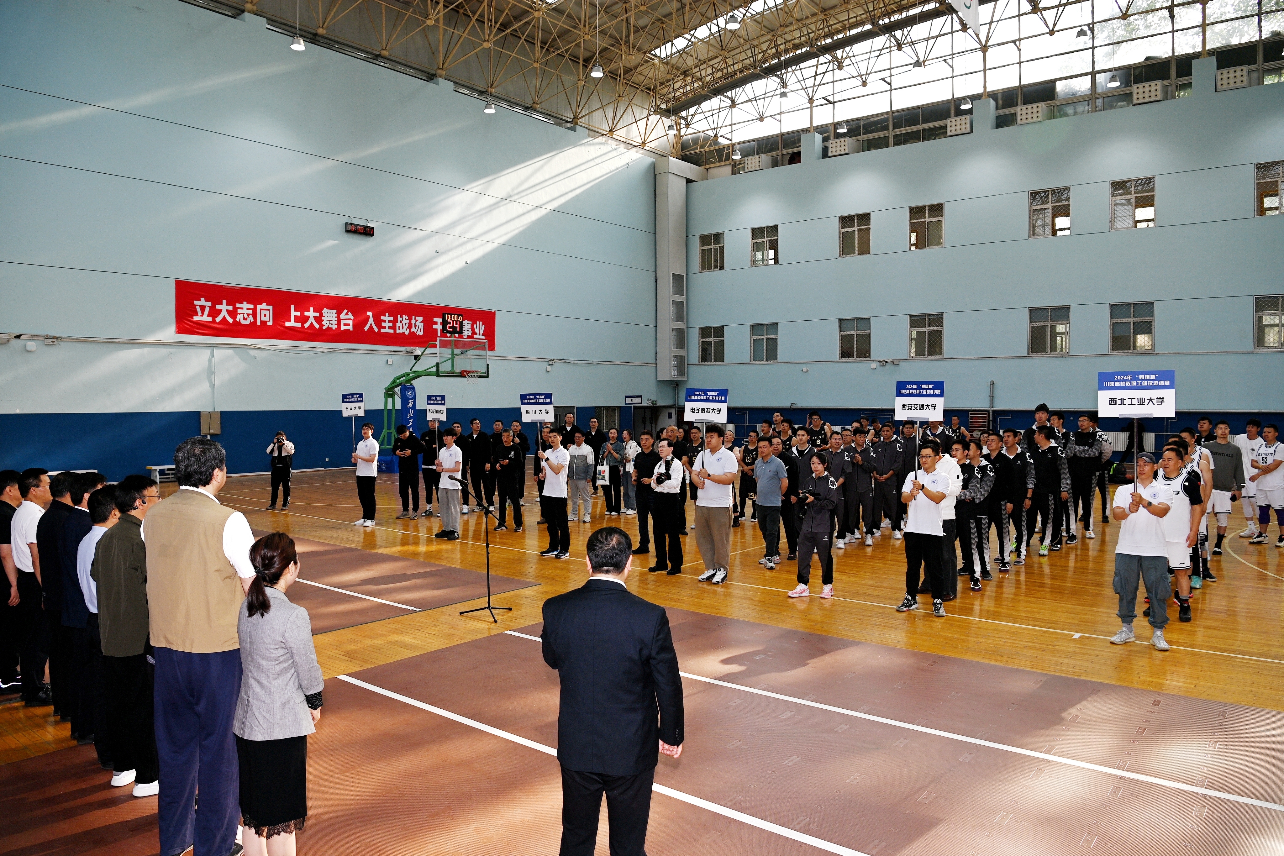 陕西省篮球协会主席王立彬,本次赛事发起方代表、四川大学工会常务副主席袁斌先后发言。
