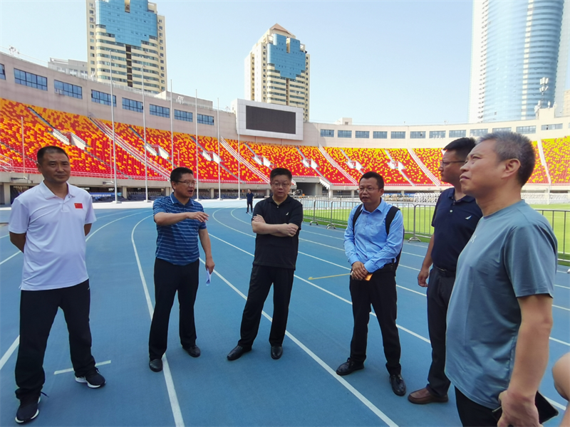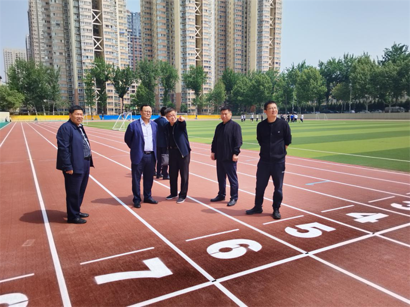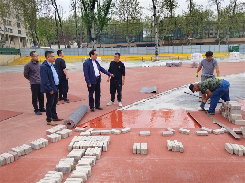 4月17日,友谊校区田径场正式开放使用,校长宋保维到现场调研田径场跑道铺设等建设情况。校长助理王宇波及相关职能部门负责人等陪同调研。
