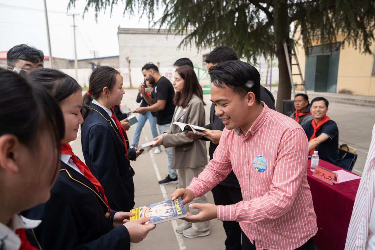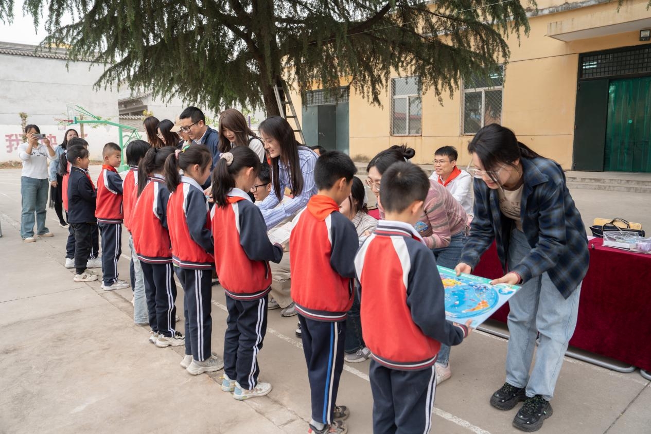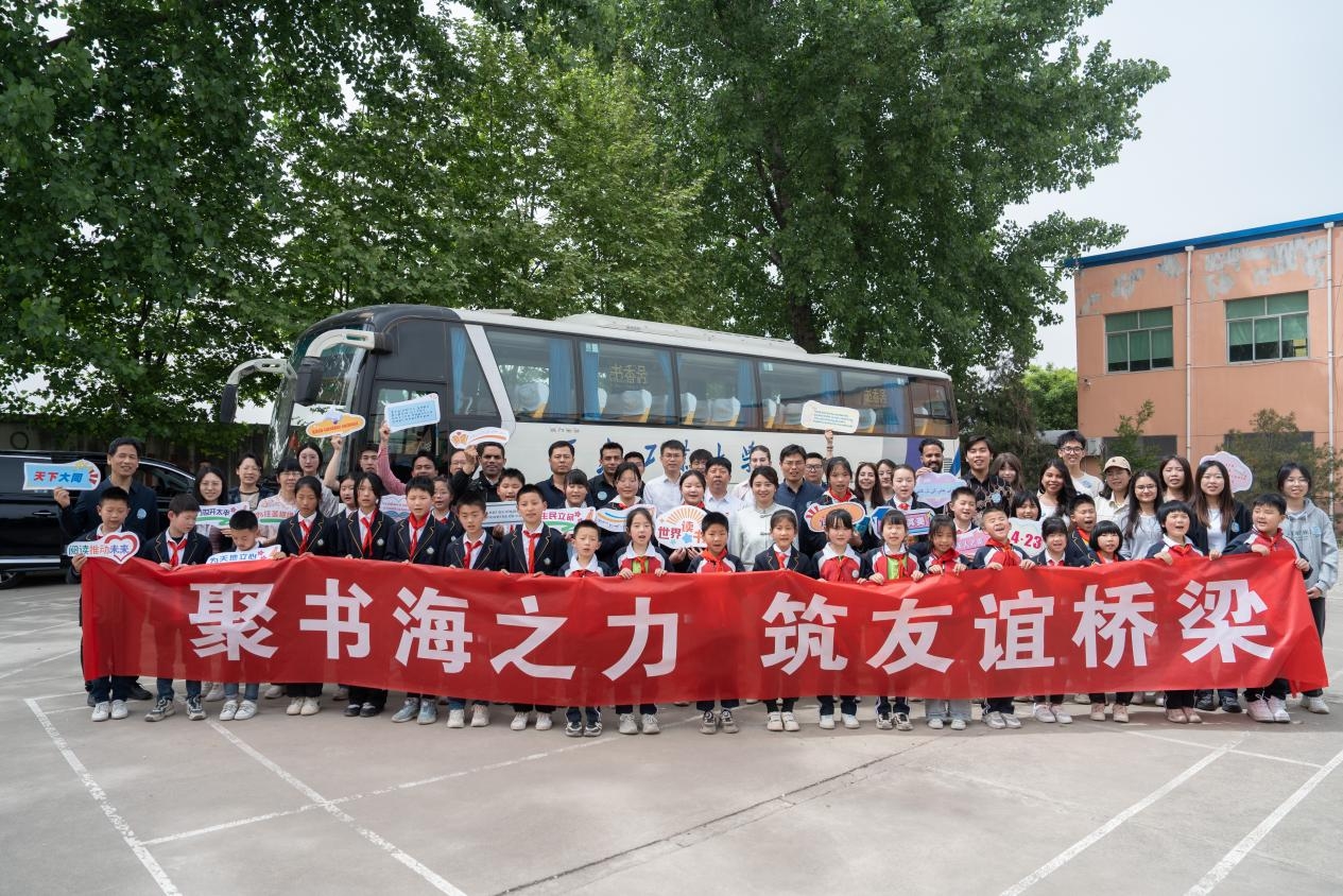 第二站,“书香号”驶向周至楼观镇送军小学。2023年第28个读书日,40余名送军小学学生乘坐“书香号”校车带着他们的飞天梦想来到了必赢3003no1线路校园,在今天第29个读书日,“书香号”带着中外学生回到了他们身旁。