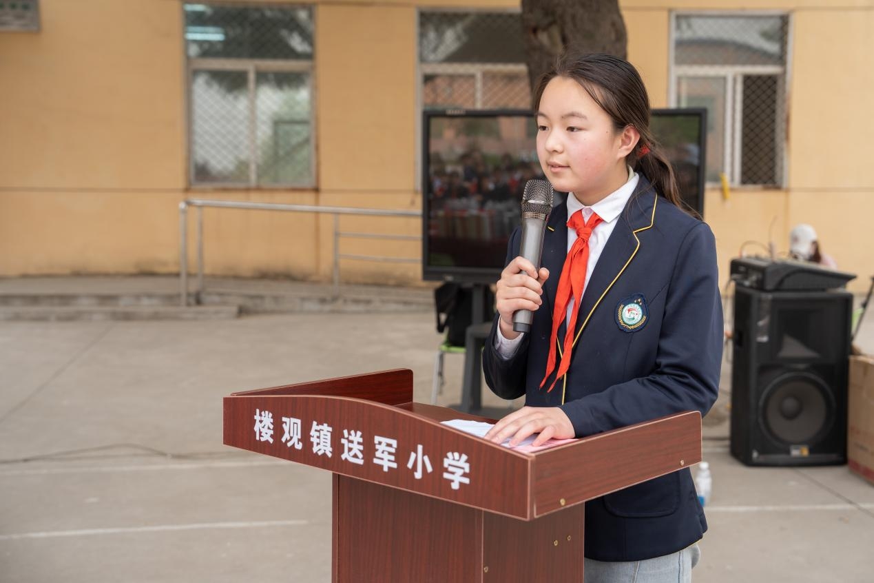 在这里,西工大师生们与送军小学师生进行了一场别开生面的文化交流活动。西工大出版社社长高大力强调了开展此次读书日回访活动的意义,希望阅读改变生活的种子能在小学生的心里慢慢发芽,也希望同学们从阅读中去看见更大的世界,中外师生一堂也能促进中外文明的交流互鉴,要投身阅读,关注文化的力量。西工大外国语学院学生代表左晶莹从幼时阅读《八十天环游世界》从而埋下“看世界”的种子为开端,讲述了她“从书中读世界,到用双眼看世界,再到从世界见自己”的走出去见世界之大的故事。国际教育学院的留学生代表ALEXANDRI IQANNA OURANIA用希腊神话与奥林匹克运动等文化标志,带领送军小学学生认识希腊走向世界,同时也深情分享了她在中国求学并决定留在中国工作的留学故事。送军小学学生代表也分享了自己的读书心得。在外国语学院党委副书记张桑桑的领读下,大家共同诵读了张载的横渠四句与费孝通先生处理不同文化关系的十六字箴言,领悟“构建人类命运共同体”这一理念背后所承载的文化根脉与大国智慧。恰逢“中国航天日”前夕,全体师生共同放飞“小火箭”,唱响“探索浩瀚宇宙、发展航天事业、建设航天强国”的主旋律。此外,西工大师生还向送军小学捐赠了图书,建立了“友谊书角”,为小学生们提供了更多的阅读资源,助力他们拓展视野,增长知识。