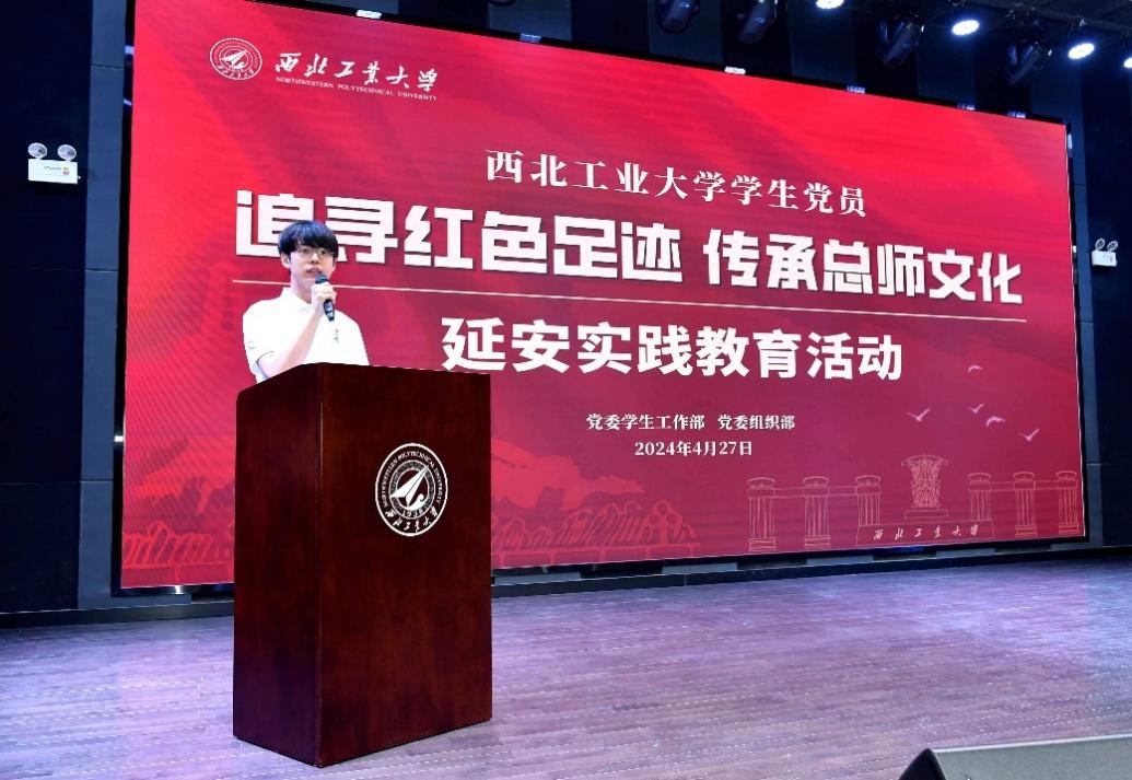 詹浩在讲话中,结合学校全面深化“总师型”人才培养体系建设的工作背景,以及学校党委关于第二课堂落实“总师型”人才培养的相关部署,就此次实践教育活动的重要意义进行了深刻阐释。他对参加活动的学生党员提出具体要求:一是要在“学”上下真功,深化“总师型”人才理论武装。认真学习习近平总书记在瞻仰延安革命纪念地时的重要讲话精神,从党的历史中感悟真理的力量,用马克思主义的真理光芒照耀前行之路;二是要在“悟”上求真效,筑牢“总师型”人才思想根基。联系实际、结合学习工作,通过“重走足迹悟使命、重温故事悟初心、重学党史悟思想”等多种形式,从伟大延安精神中汲取智慧和营养、砥砺意志和品格;三是要在“践”上见真章,强化“总师型”人才使命担当。以党纪学习教育为契机,以延安实践教育为载体,学纪、知纪、明纪、守纪,自觉坚定理想信念、模范遵守党规党纪、练就过硬本领、投身强国伟业。