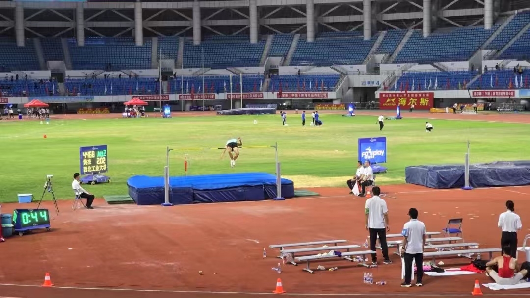 必赢官网高水平田径队黄杰同学参加男子丙组(高水平组)十项全能比赛,全能比赛项目包括100米、跳远、铅球、跳高、400米、110米跨栏、铁饼、撑杆跳高、标枪、1500米,集中在两天内完成比赛。在7月18日晚最后一项1500米激烈角逐中,只有领先第二名十秒以上才能获得总分第一名的情况下,黄杰同学凭借超出常人的意志力以领先第二名十五秒、总分6780分的优异成绩荣获本次全国大学生田径锦标赛十项全能冠军并打破陕西省大学生记录!
