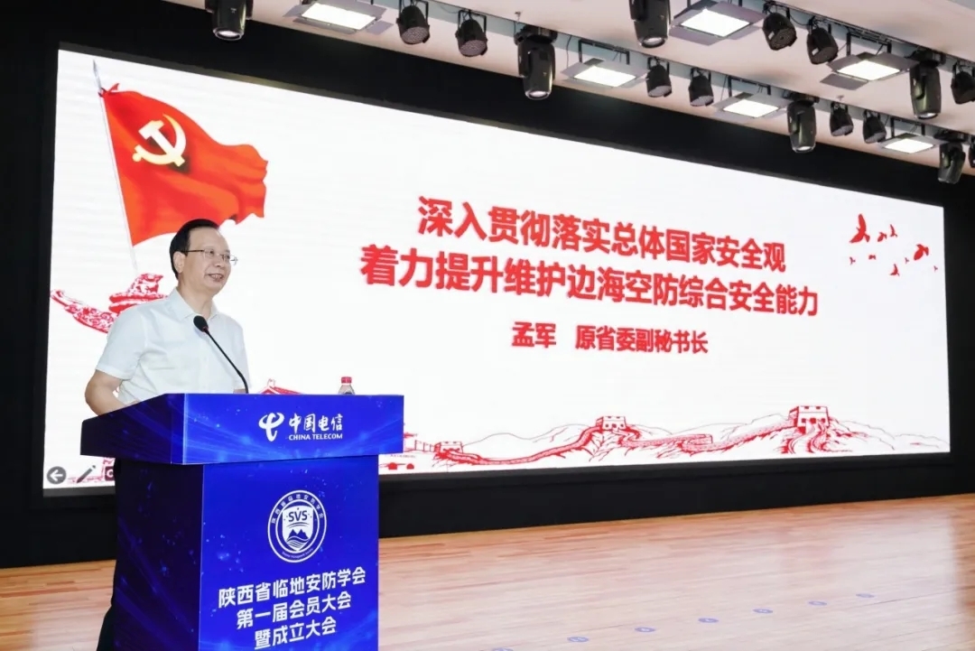 学会成立后,原陕西省委副秘书长孟军,中国电信股份有限公司陕西分公司党委副书记、副总经理王磊和李学龙理事长分别以《深入贯彻落实总体国家安全观 着力提升维护边海空防综合安全能力》《低空经济的发展为临地安防带来新的机遇与挑战》《“临地安防”的背景与内涵》为题作报告并交流讨论。
