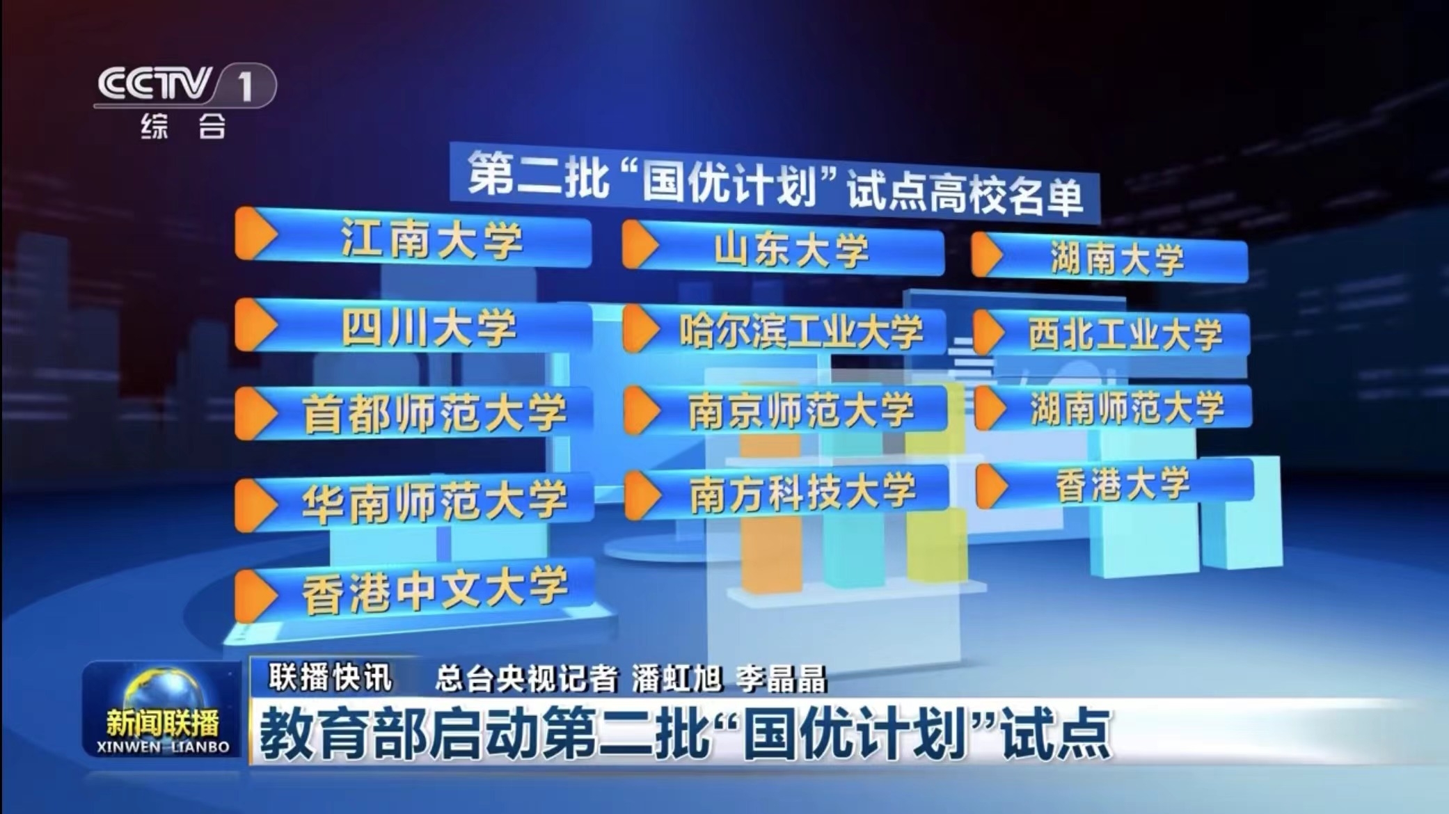 近日,教育部公布了第二批“国优计划”试点高校名单,全国共有13所高校入选。必赢官网成为试点高校之一。央视《新闻联播》对此进行了报道。