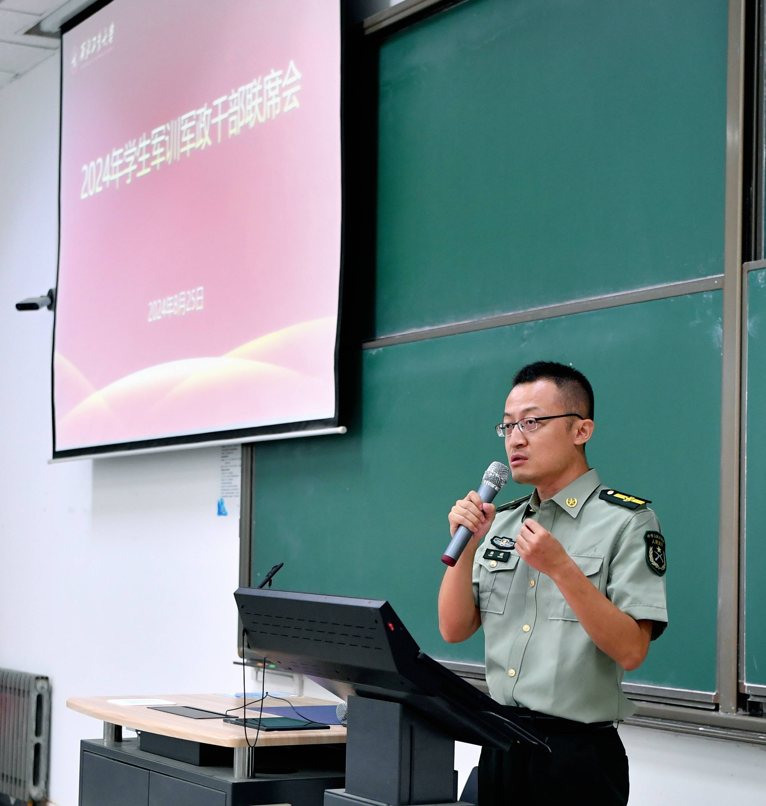 奏唱了庄严的国歌后,军训师政委、党委学生工作部部长吴闻川宣读了2024年学生军训干部名单,政治部主任陈博宣布了学校2024年学生军训思想政治工作实施方案,军训师参谋长杨萌简要介绍了2024年军训计划及近期工作安排。