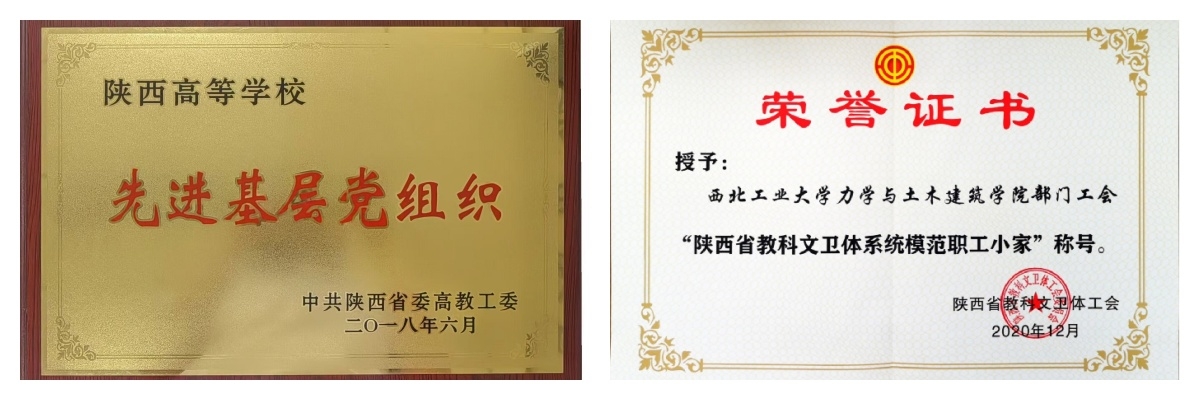 2019年以来,力学与土木建筑学院在学校党委的正确领导下,在全院师生的共同努力下,坚持社会主义办学方向,认真贯彻习近平总书记关于教育、科技、人才工作的重要论述,全面落实立德树人根本任务,推动党建业务协同发展,凝心聚力,深化改革,追赶超越,全面开启特色鲜明的一流学院建设新征程。学院先后获评全国党建双创工作样板支部、陕西省教科文卫体系统模范职工小家、校级党建荣誉10余项。